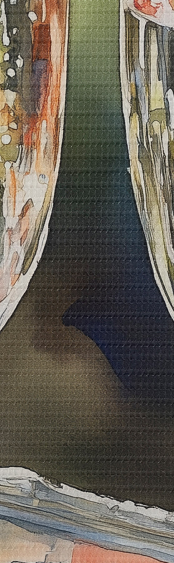 Pentru a întinde pânza pe barele de întins fără a deteriora imaginea, folosim o imagine în oglindă.