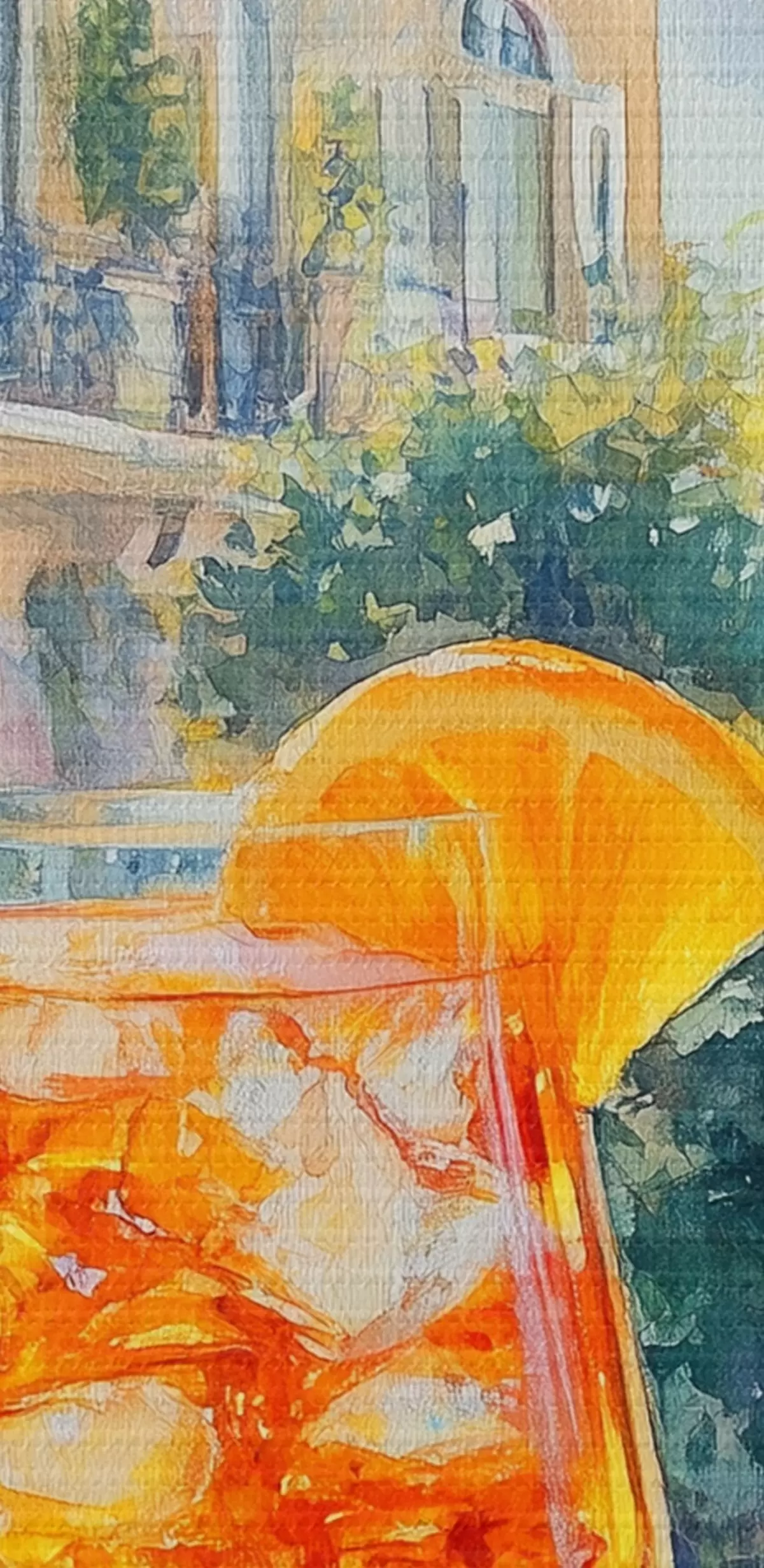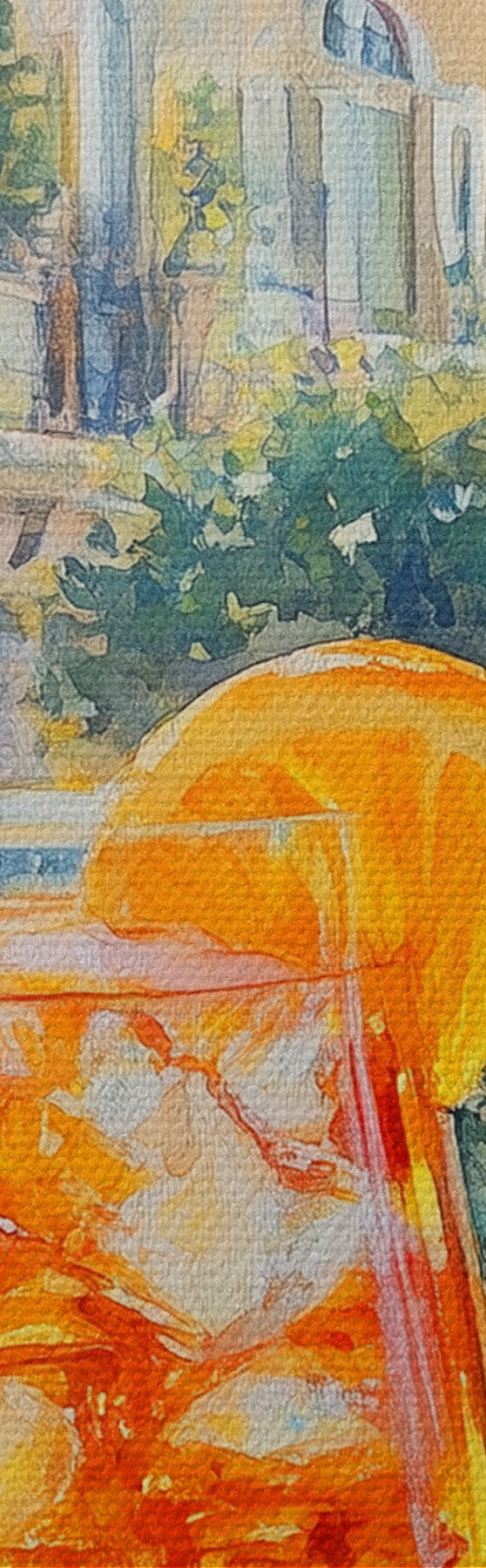 Pictură pe pânză Cocktail cu portocale, stil acuarelă, Italia, Aperol Spritz, arhitectură, grădină de vară Nr s43061