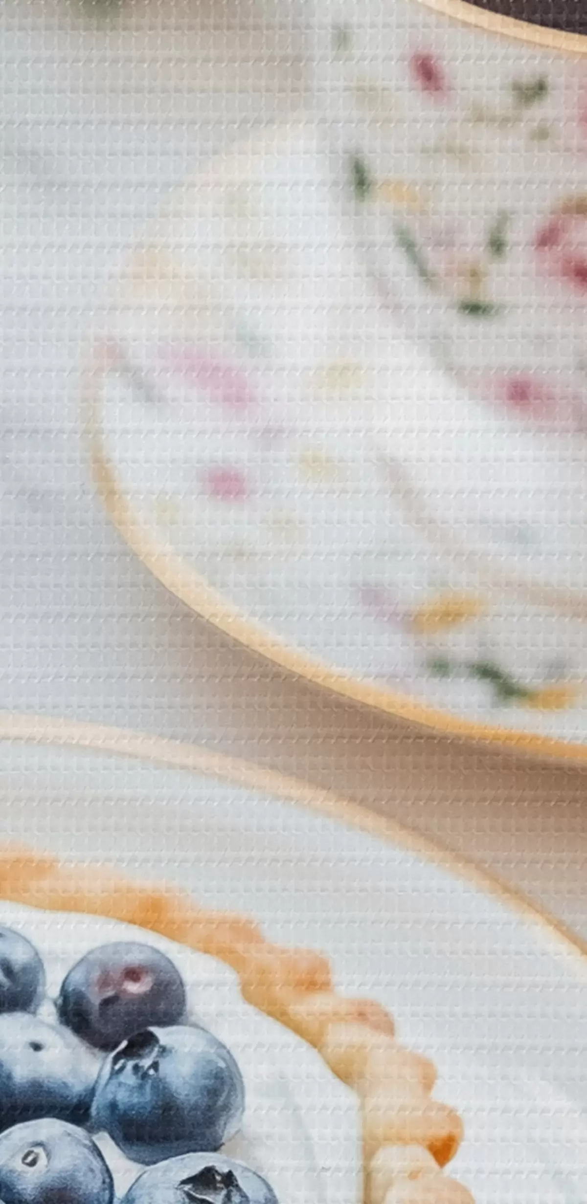 Tablouri Prăjitură cu afine cu ceașcă de ceai, stil boho, trandafiri roz s43066