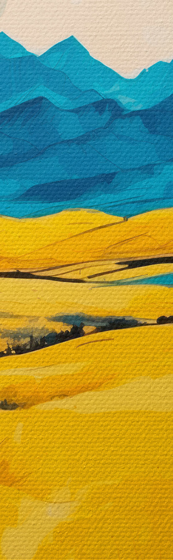 Tablouri Câmp galben pe fundalul munților în stilul picturii acuarelă s43117