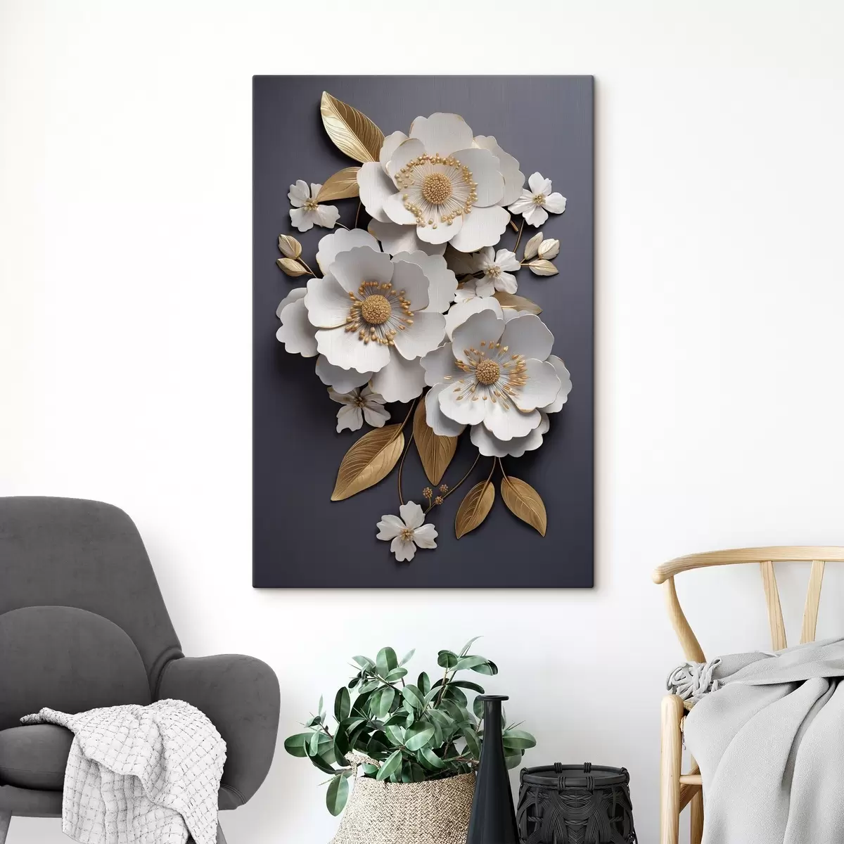 Pictură pe pânză Trei flori albe pe un fundal întunecat Nr s43129
