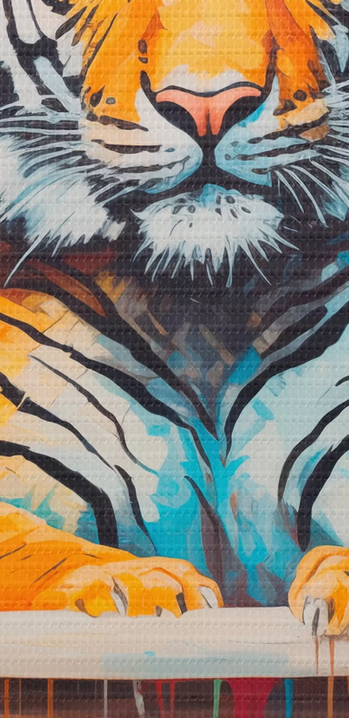 Pictură pe pânză Un tigru abstract într-o cadă, înconjurat de flori vibrante Nr s43134