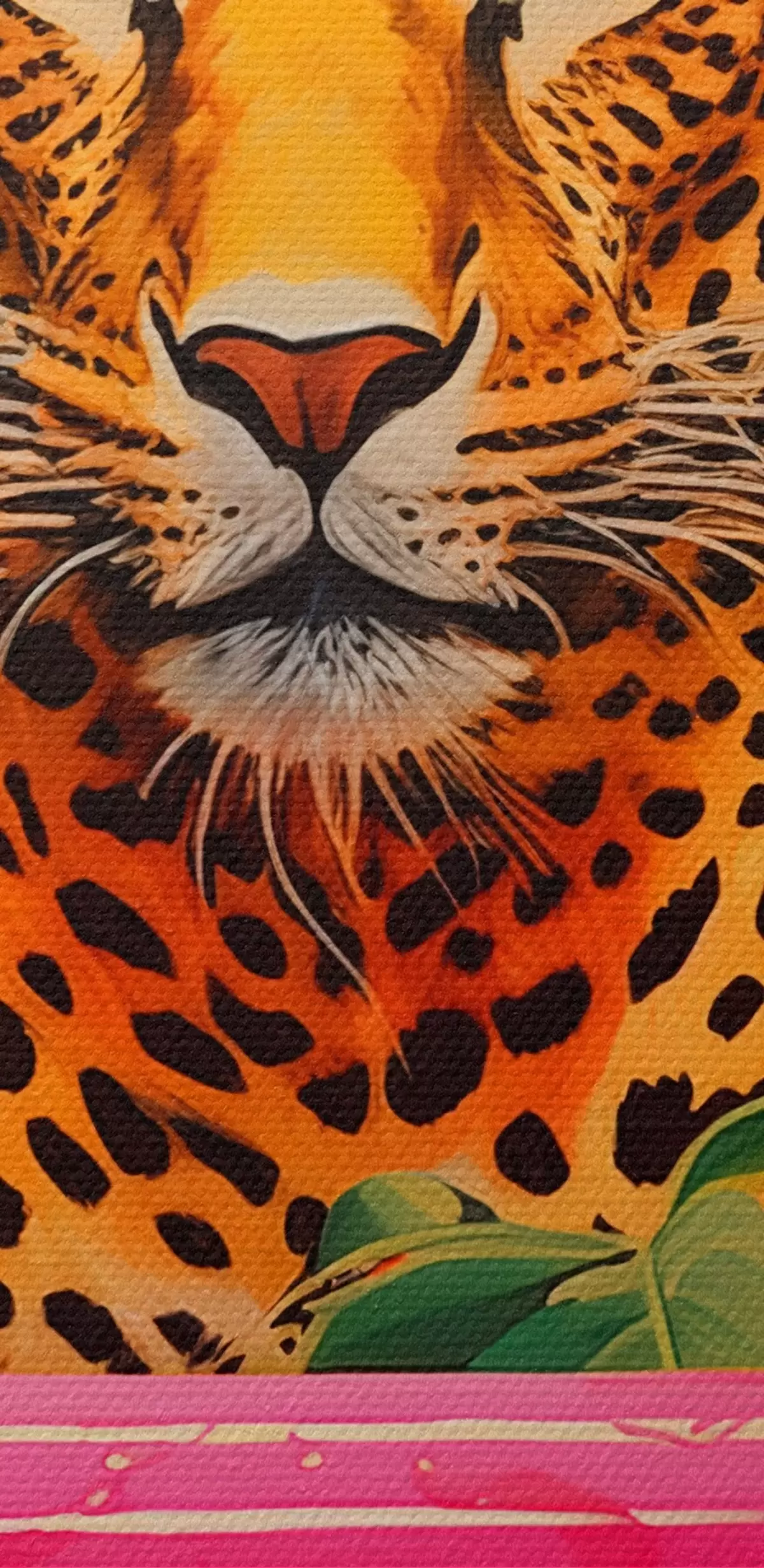 Pictură pe pânză Un leopard într-o cadă roz în mijlocul plantelor exotice Nr s43135