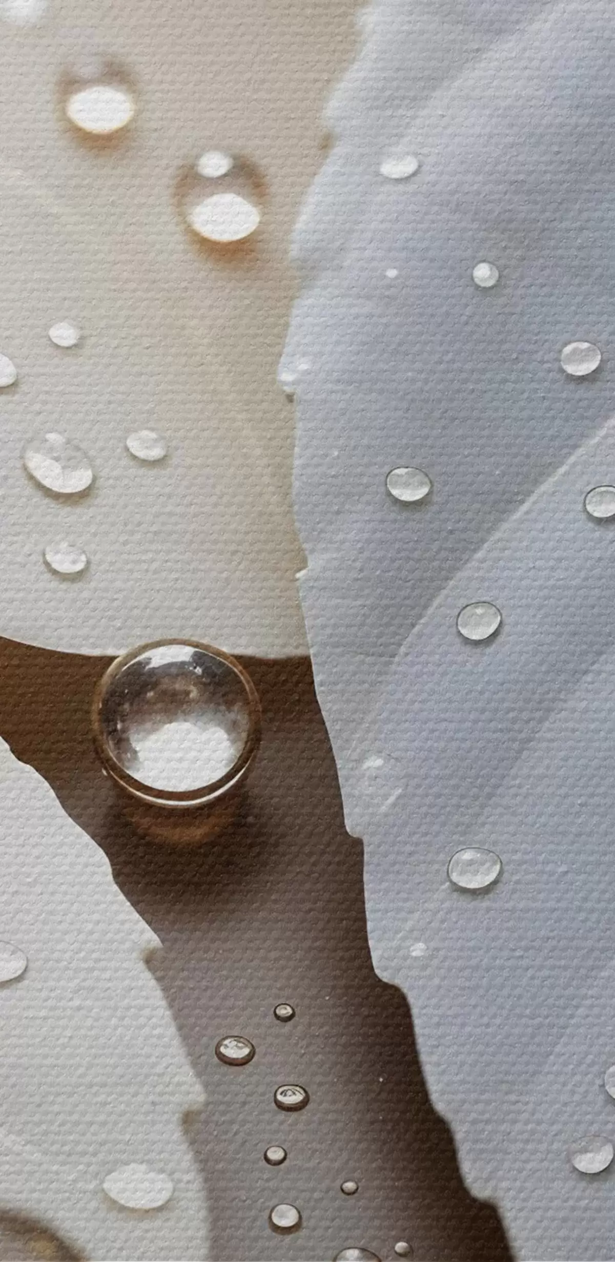 Tablouri Close-up de frunze albe acoperite cu picături de apă, o compoziție minimalistă, fundal neutru s43159