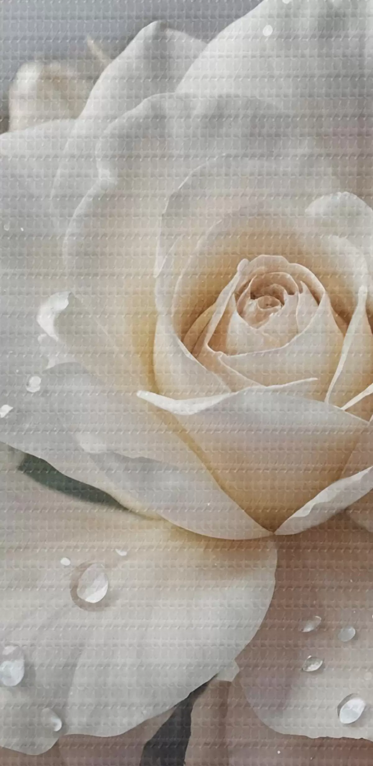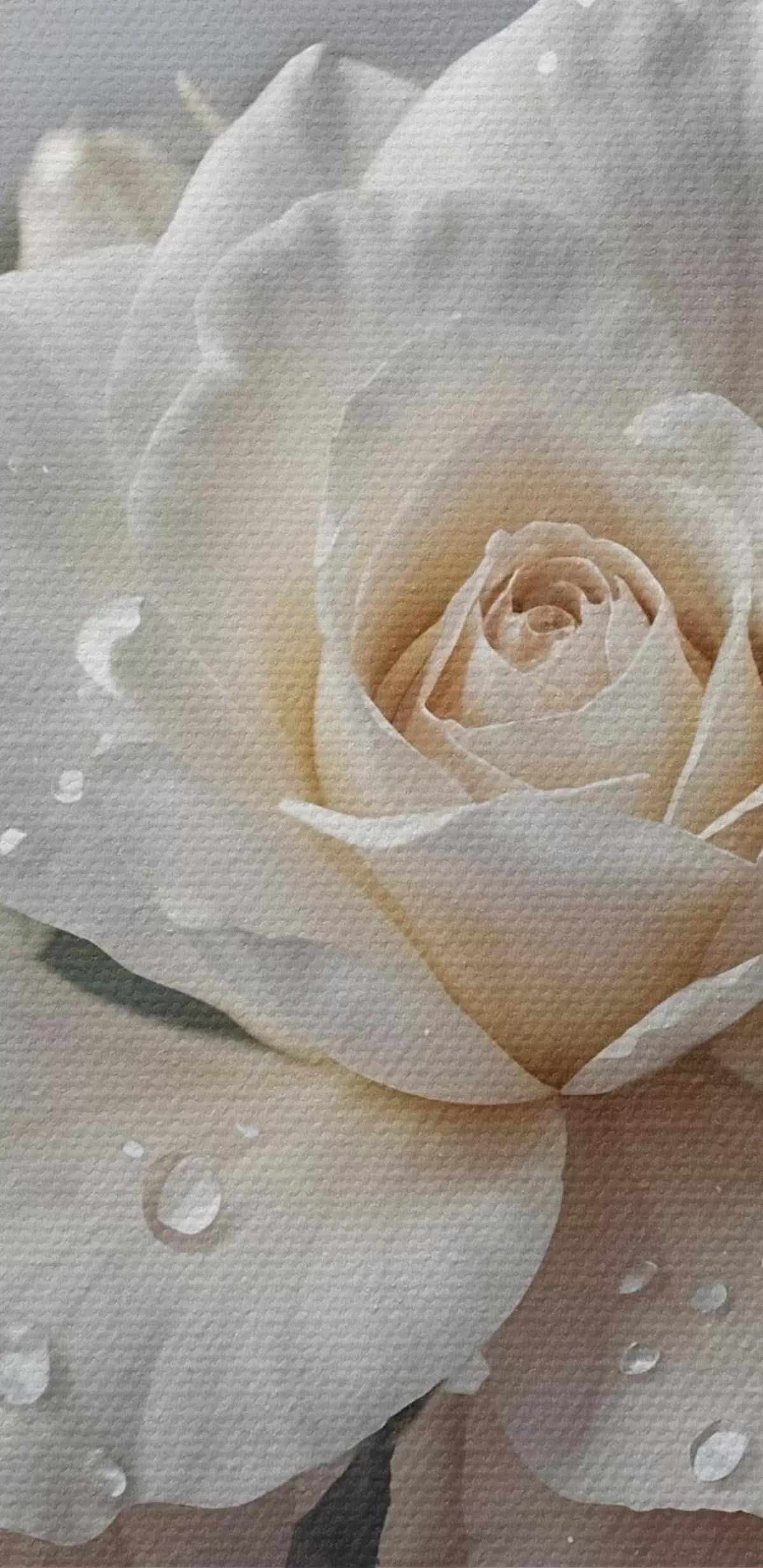 Pictură pe pânză Un grup de trandafiri albi cu picături de apă pe petale, câteva frunze verzi, fundal mut, lumină moale Nr s43163