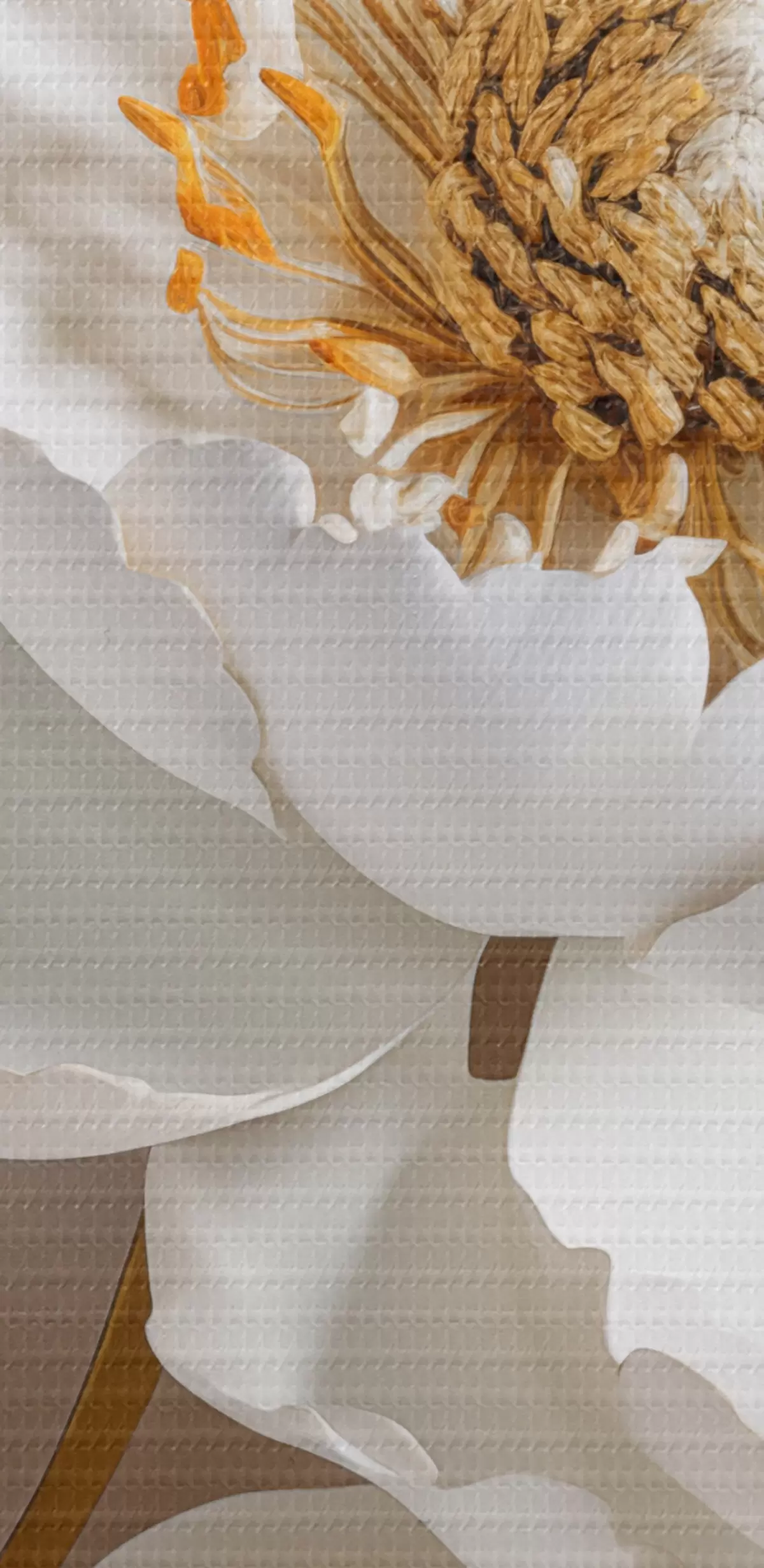 Tablouri Alb delicat detaliate flori de bujor decorative cu frunze galbene, fundalul este o culoare gri deschis s43176