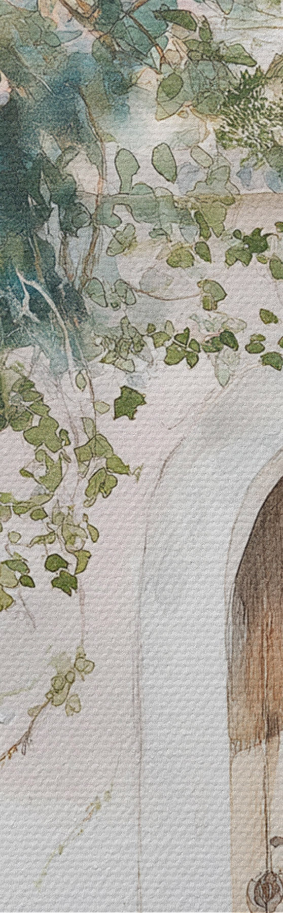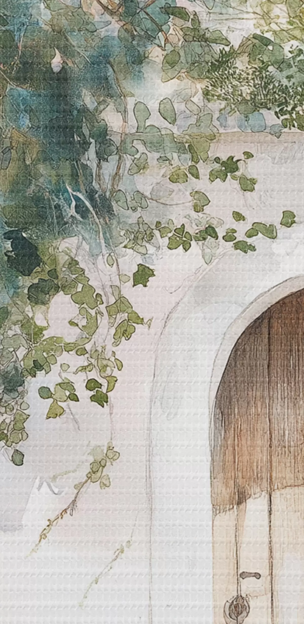 Tablouri Frumoasă casă albă cu copac înflorit, mediteranean, stil acuarelă s43179