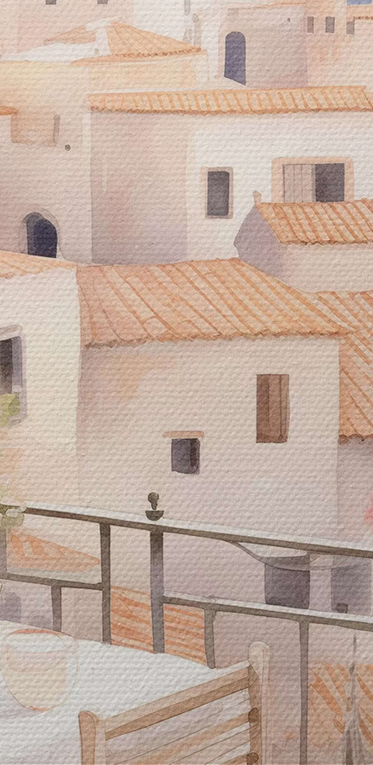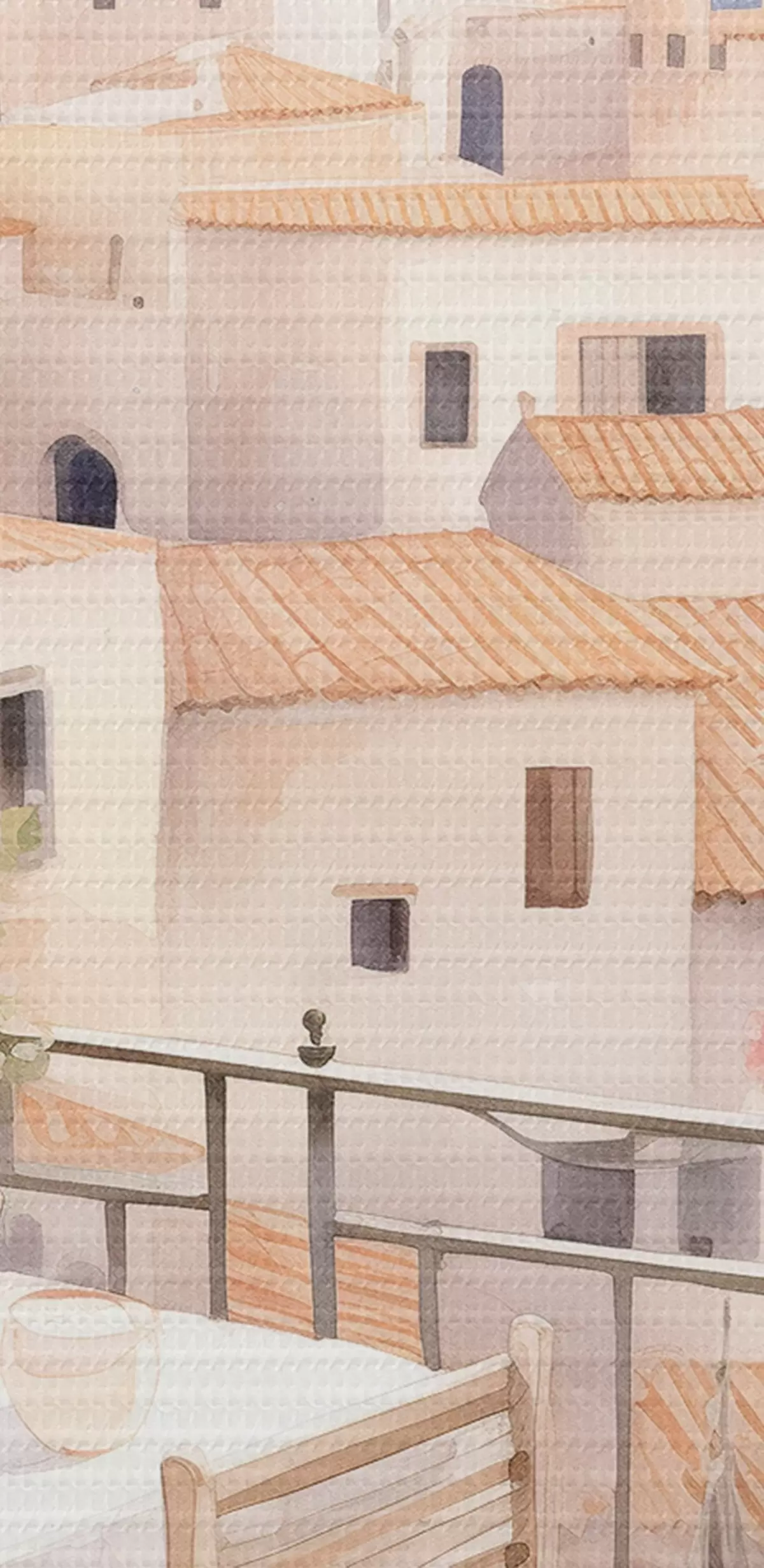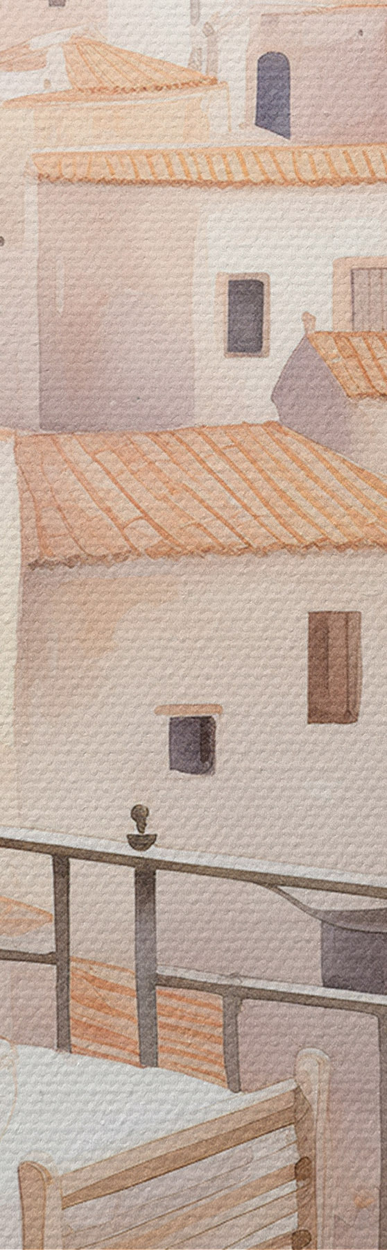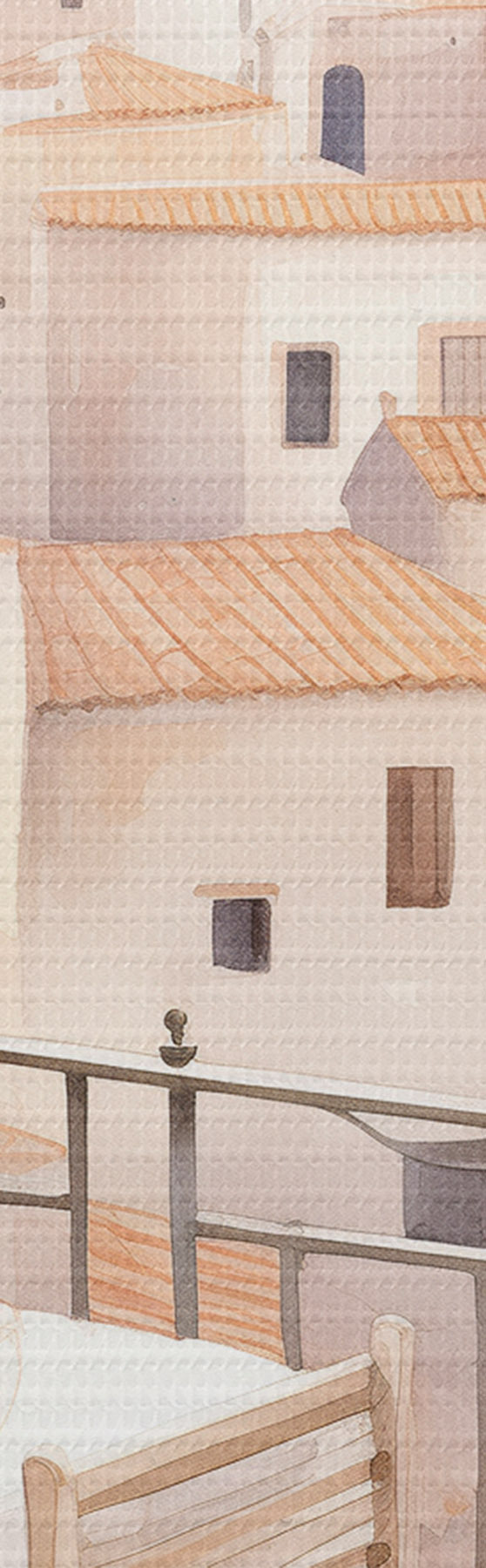 Tablouri Apus de soare pe balcon, Italia, arhitectura, flori înflorite, stil acuarelă s43184