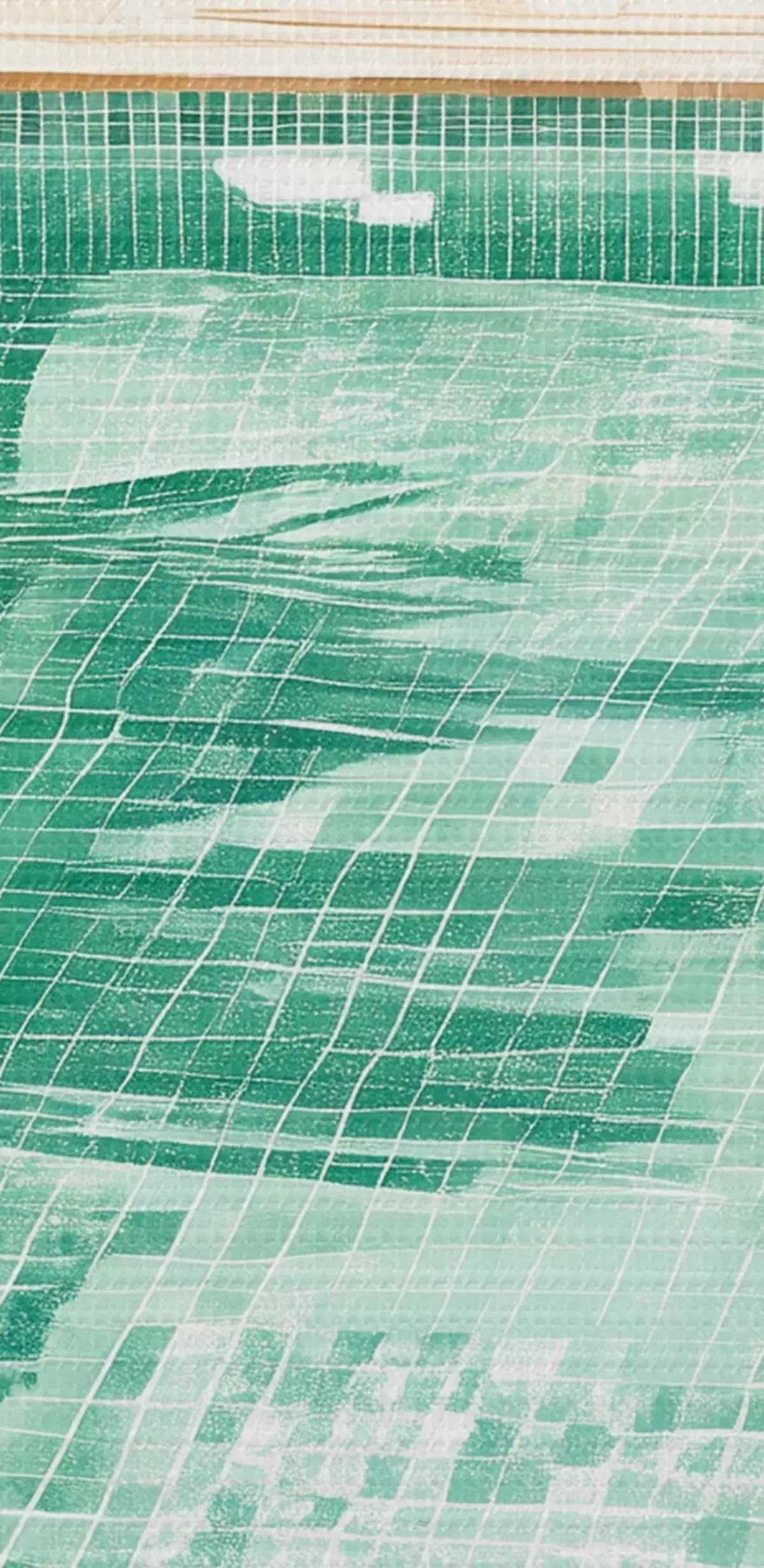 Tablouri Piscină de vară în grădina verde, stil de epocă, acuarelă s43189