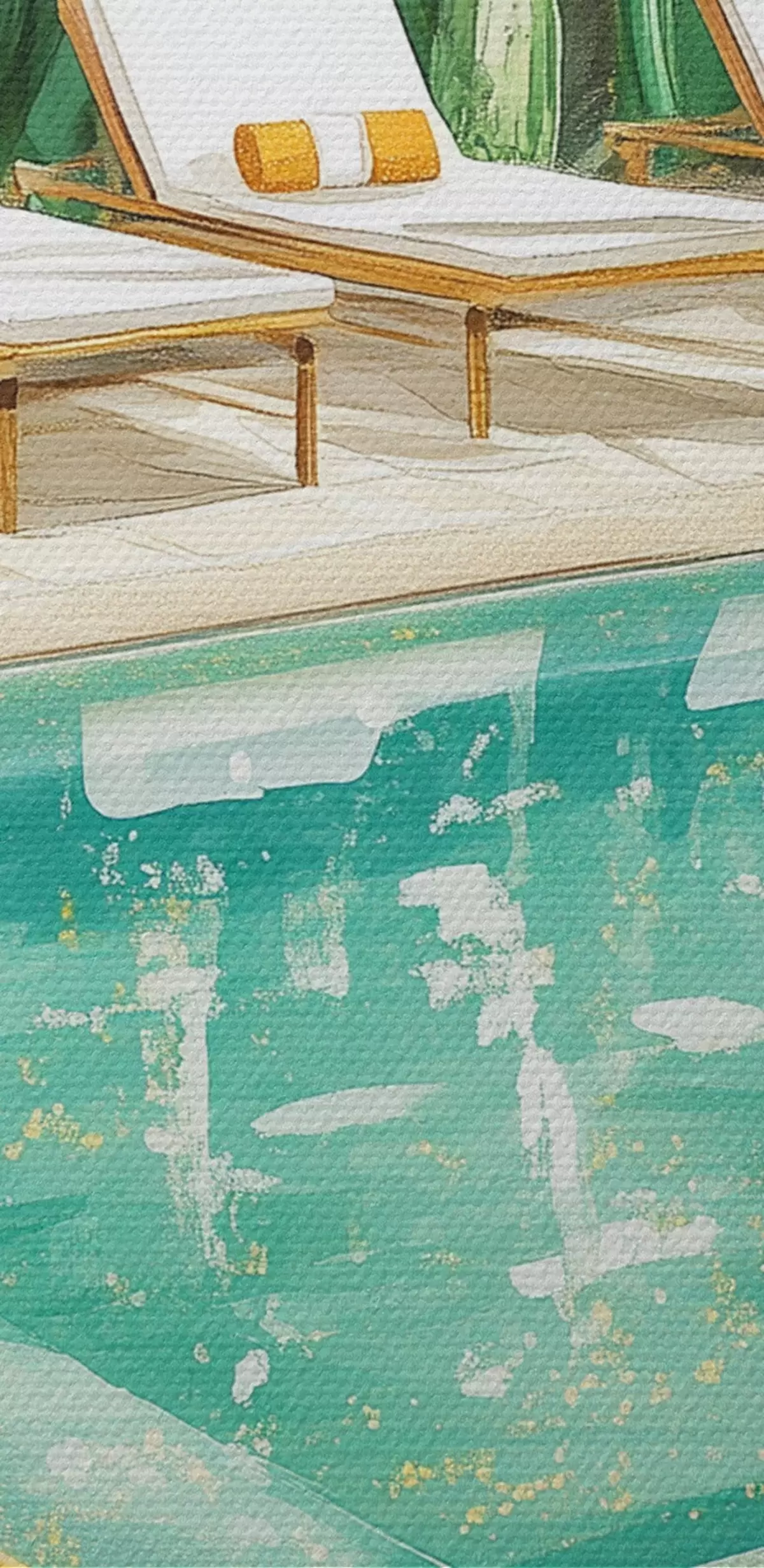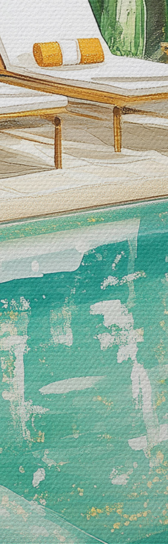 Pictură pe pânză Natură tropicală, grădină, piscină de vară, surfing, stil acuarelă Nr s43190