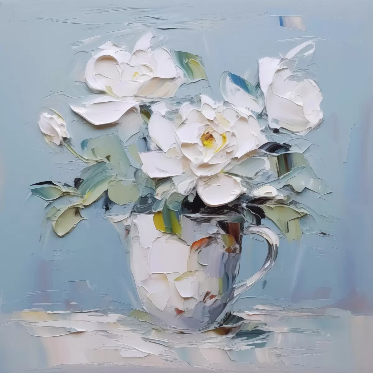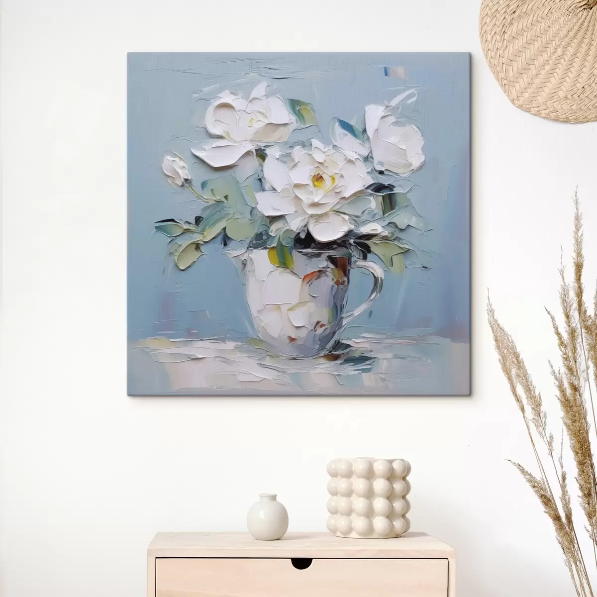 Pictură pe pânză Flori albe într-o pictură imitație de ceașcă Nr s43225