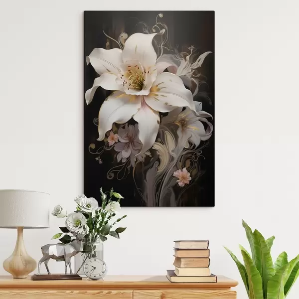 Pictură pe pânză Close-up abstract floare de crin pe un fundal întunecat Nr s43254