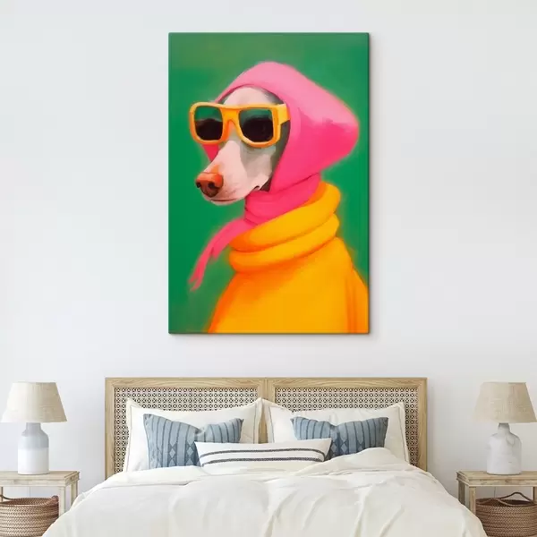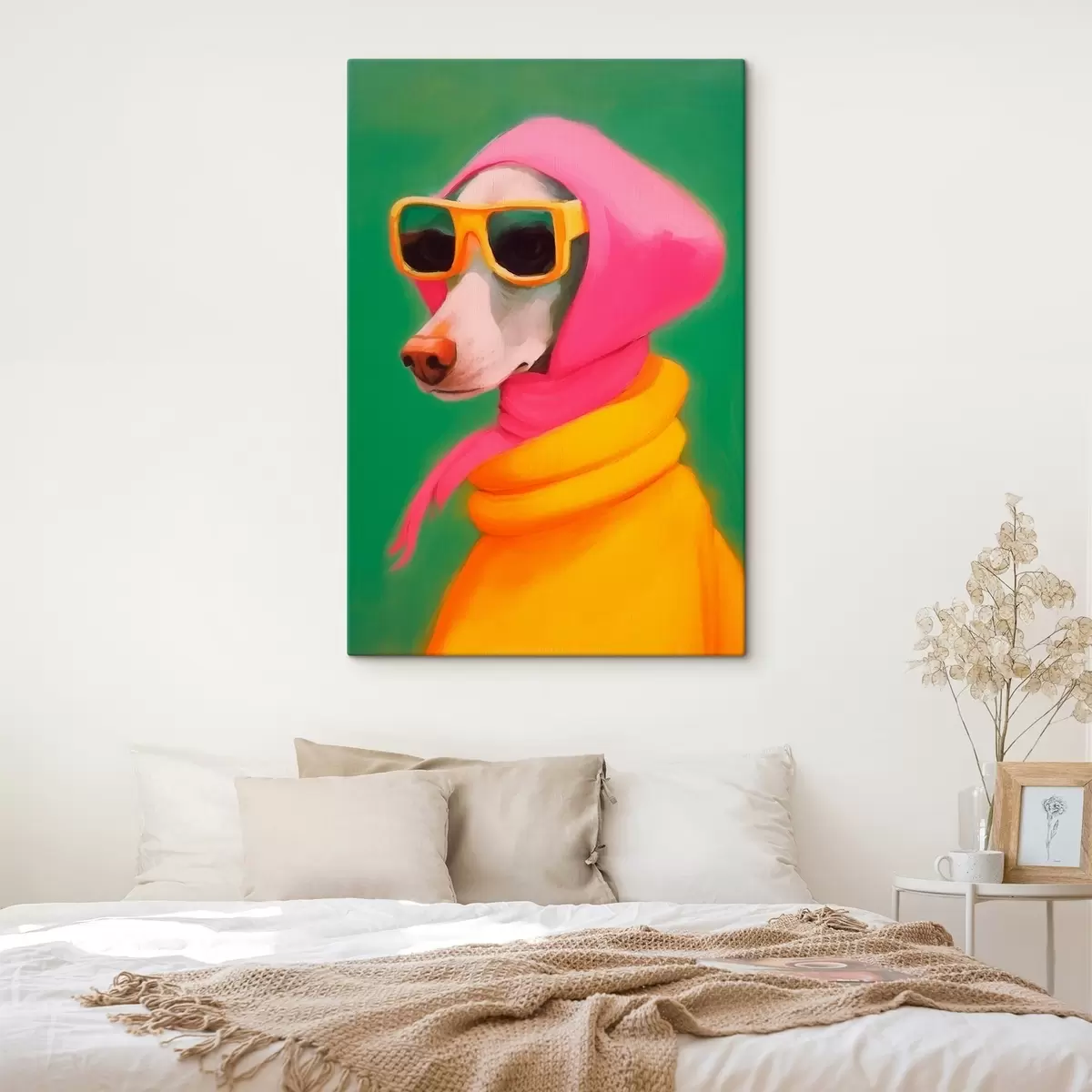 Pictură pe pânză Câine stilat în haine luminoase Nr s43265