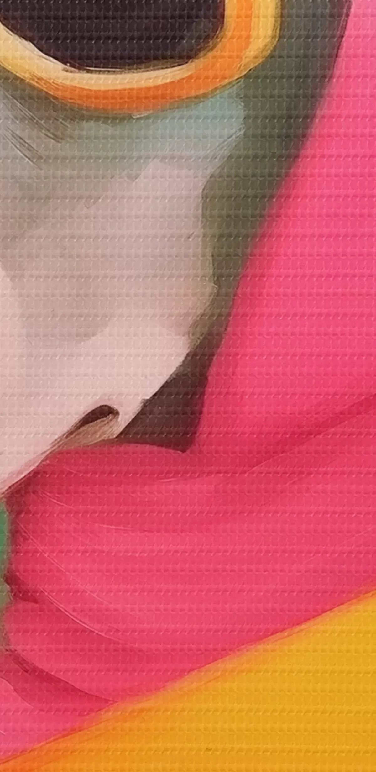 Țesătura fină a firelor de pe această pânză seamănă cu suprafața pânzelor artiștilor profesioniști.