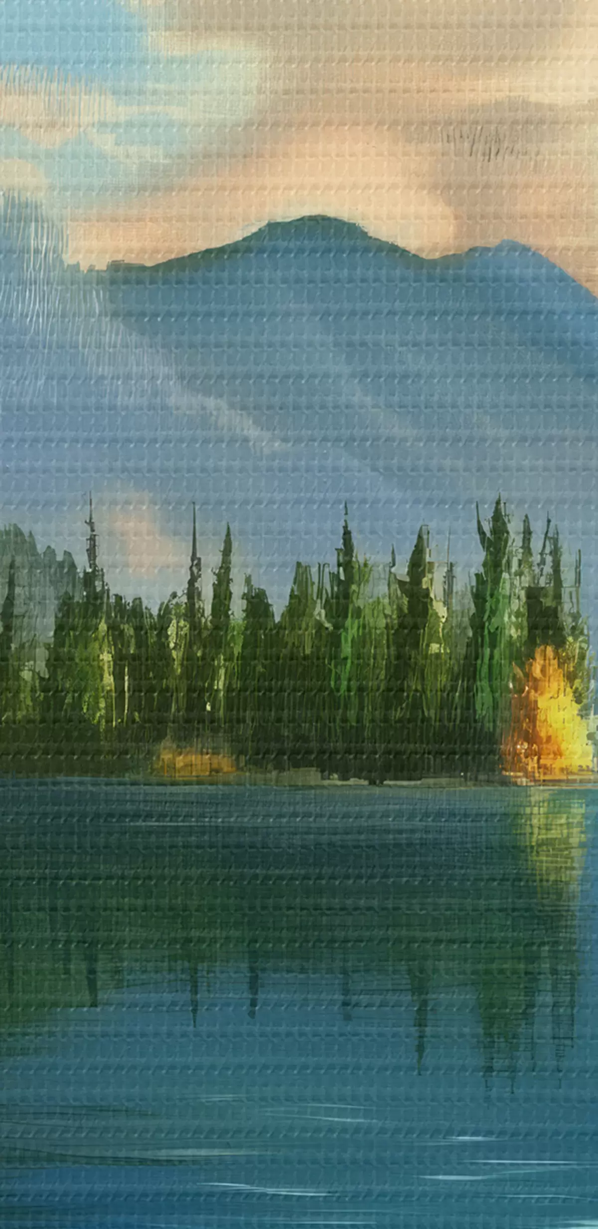 Țesătura fină a firelor de pe această pânză seamănă cu suprafața pânzelor artiștilor profesioniști.