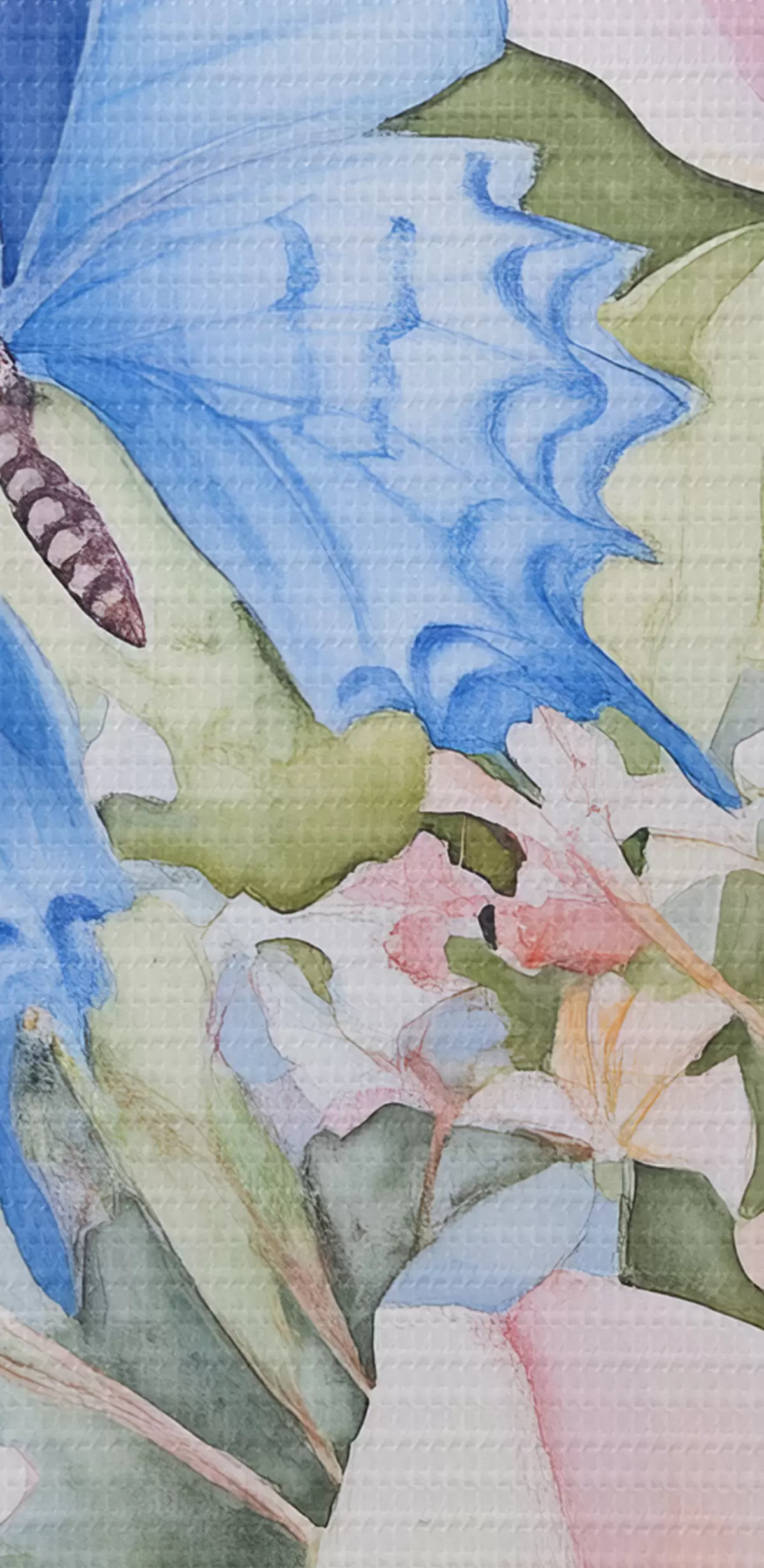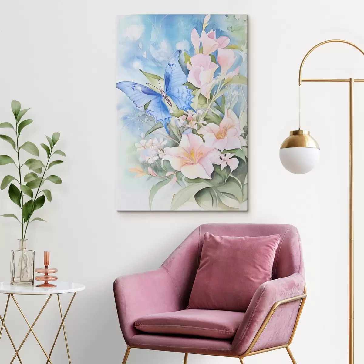 Pictură pe pânză Fluture albastru și flori roz Nr s43296