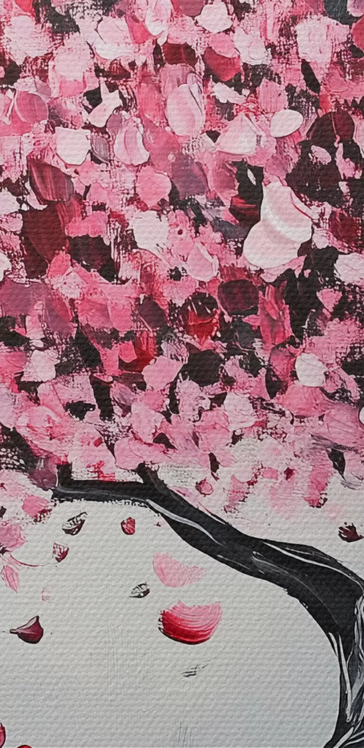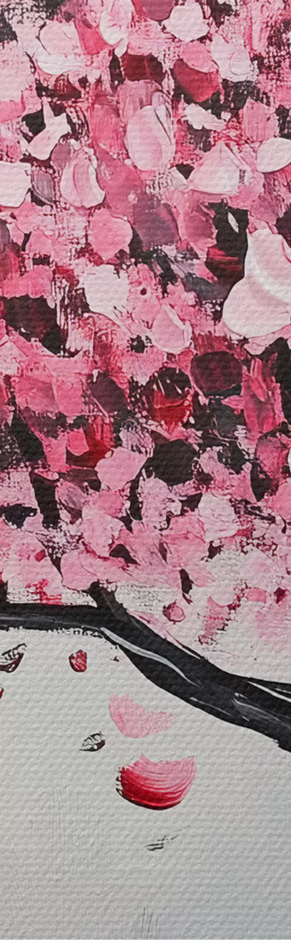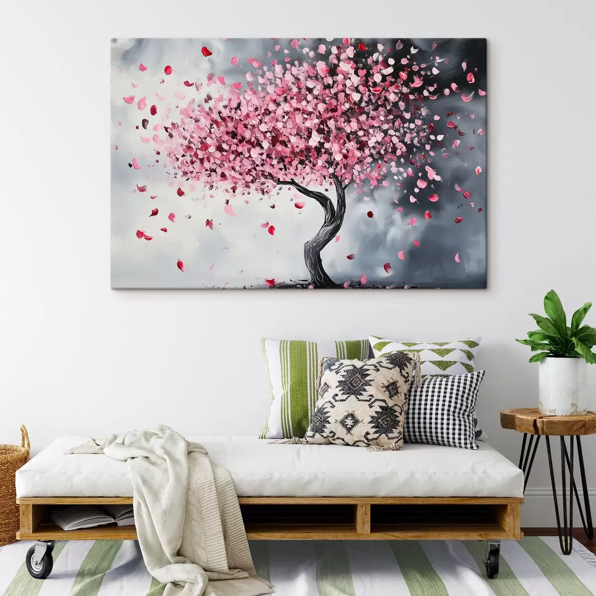 Pictură pe pânză Copac înflorit roz pe fundal gri Nr s43299