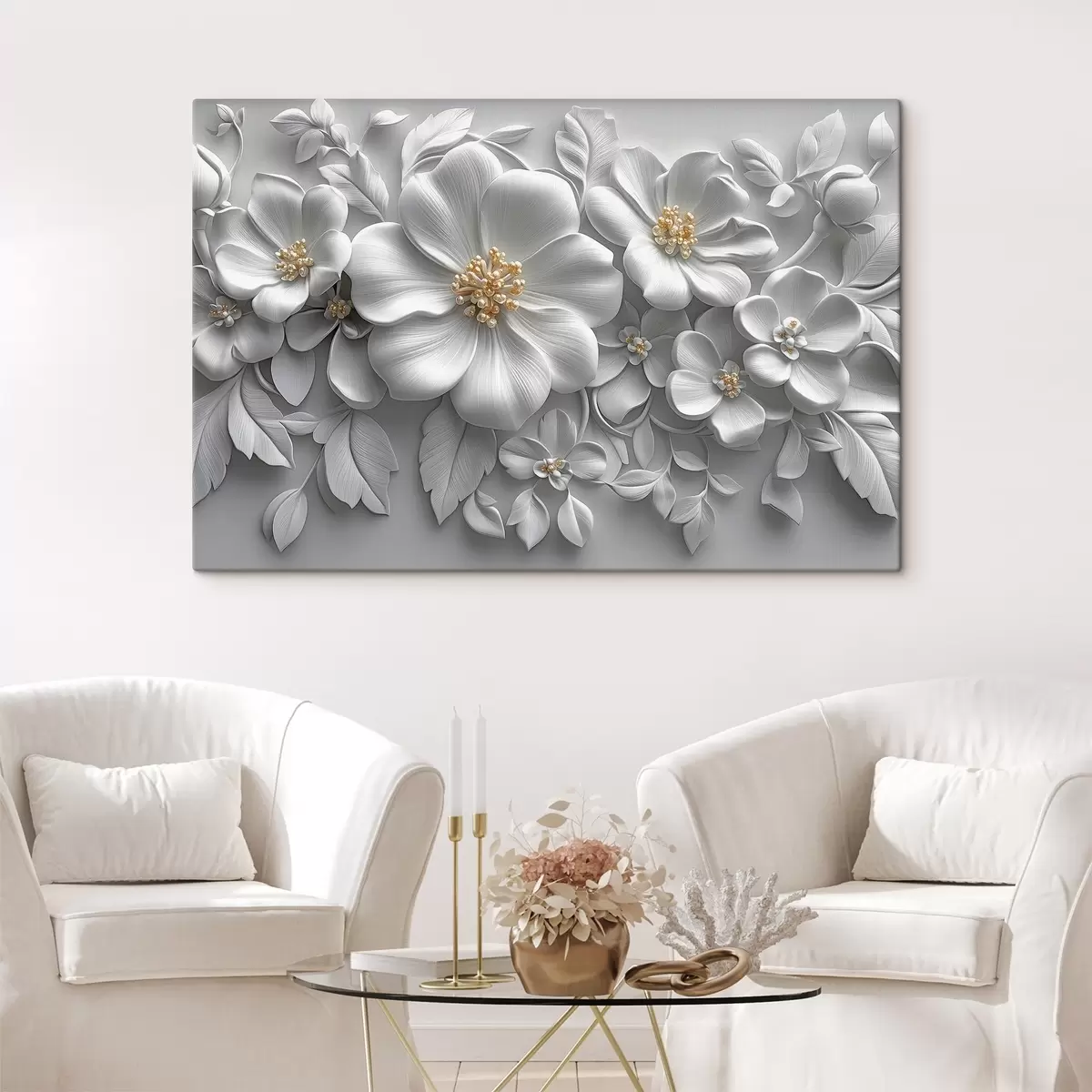 Pictură pe pânză flori gri 3d cu un accent galben Nr s43310