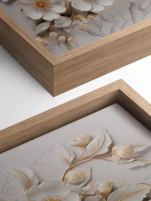 Tablouri flori albe 3d în stil clasic cu un accent galben s43313