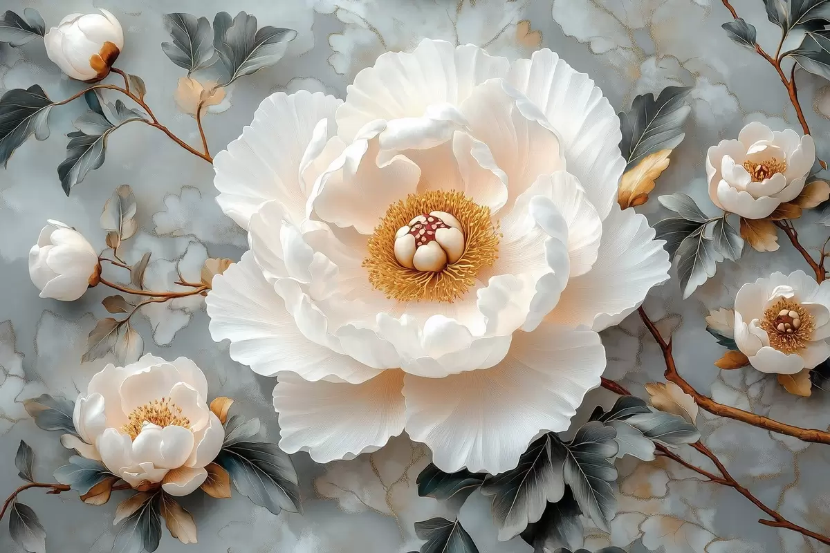 Tablouri Bujor superb pe un fundal de frunze și bujori mici s43315