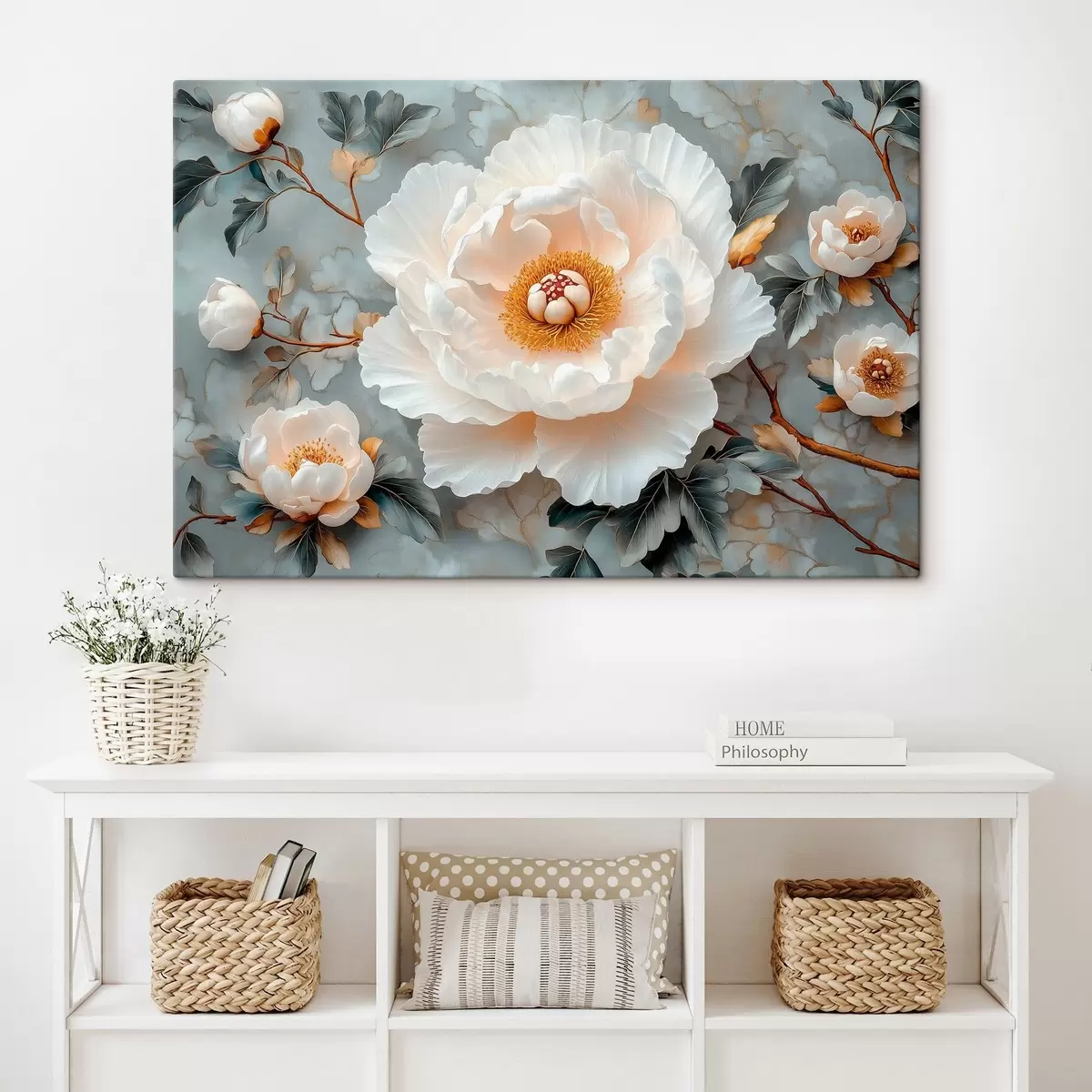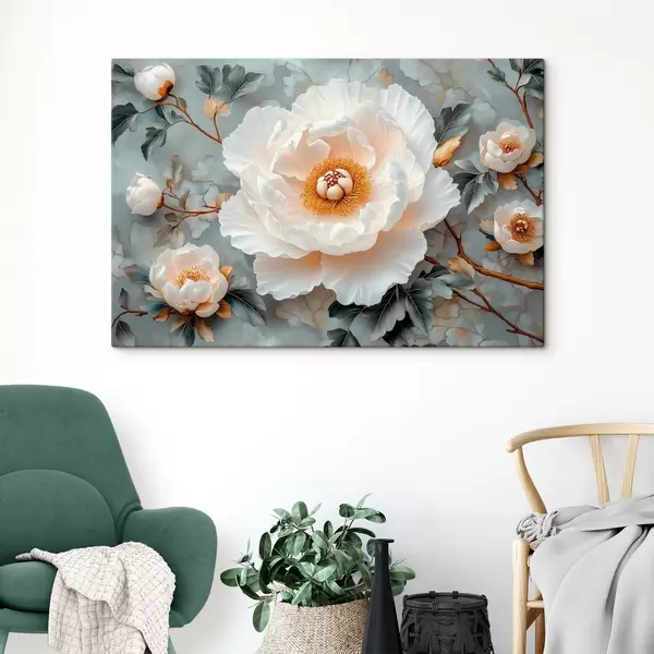Pictură pe pânză Bujor superb pe un fundal de frunze și bujori mici Nr s43315