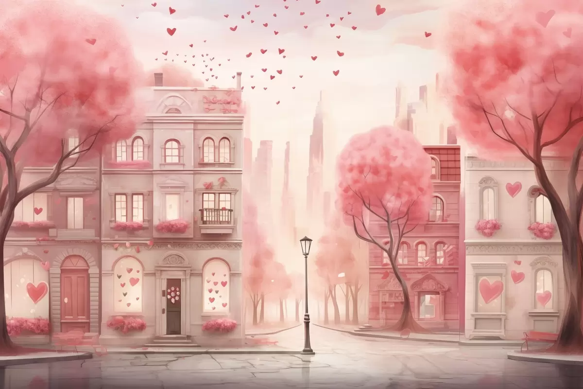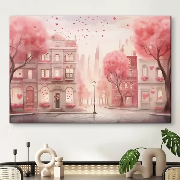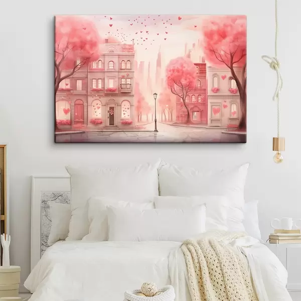 Pictură pe pânză Romantic strada roz cu inimi Nr s43324