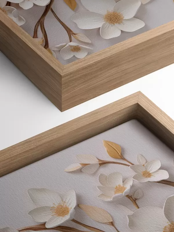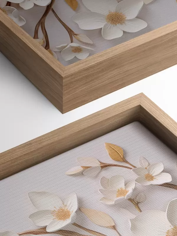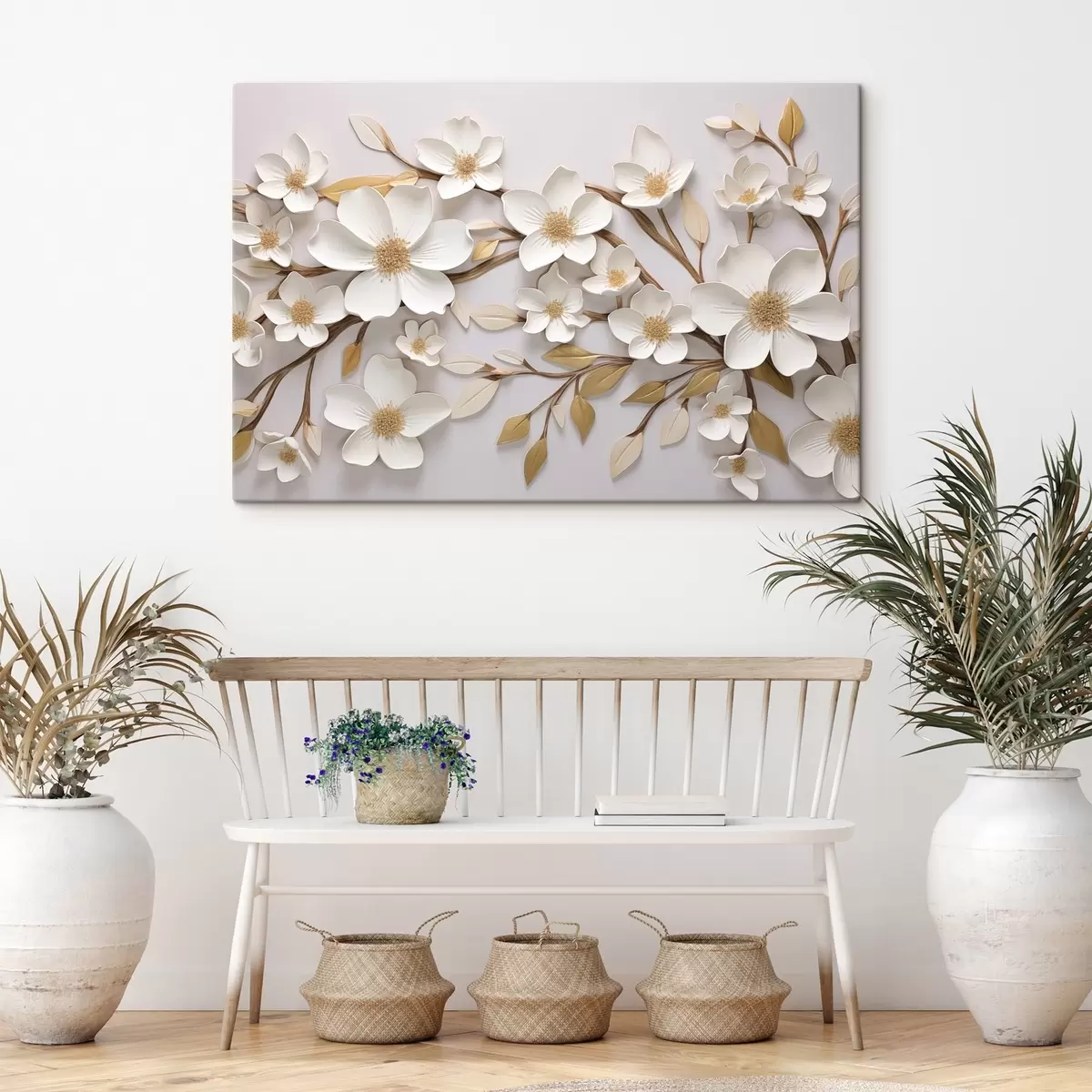 Pictură pe pânză Flori albe în stilul unei fresce în relief cu accente galbene Nr s43331
