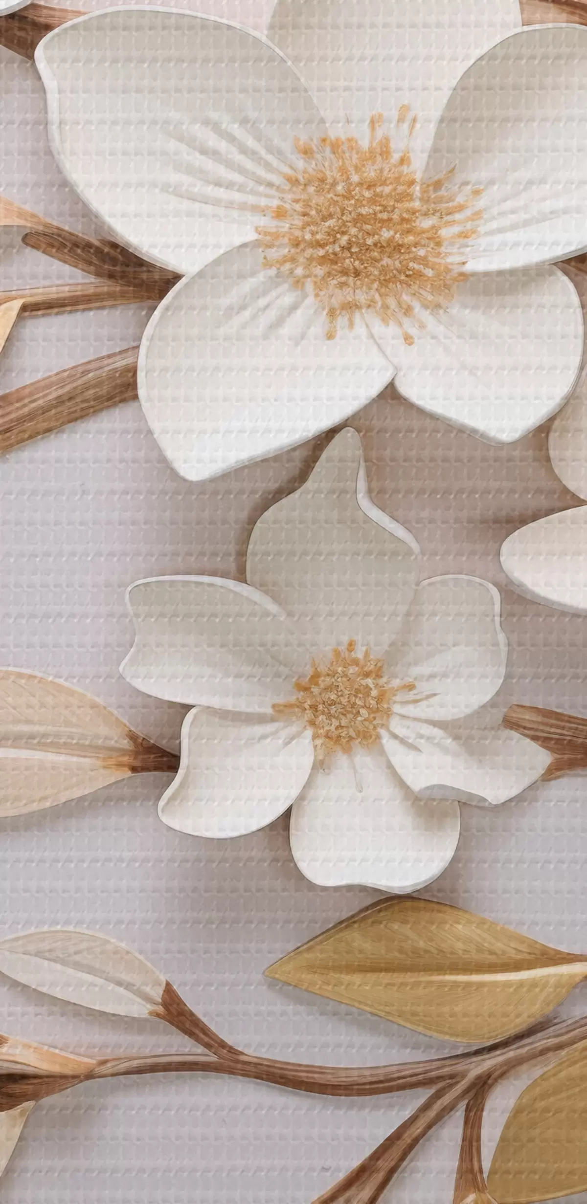 Tablouri Flori albe în stilul unei fresce în relief cu accente galbene s43331