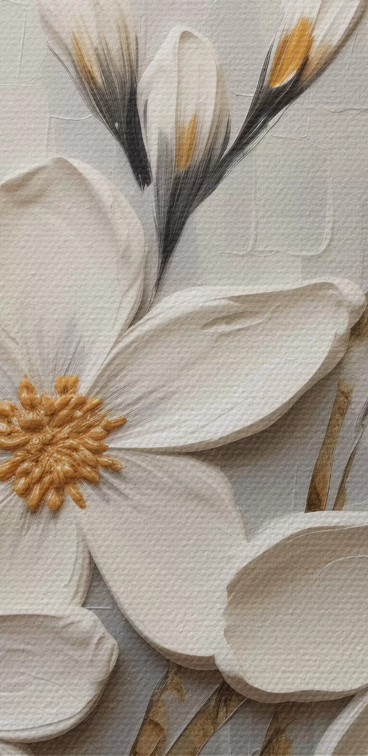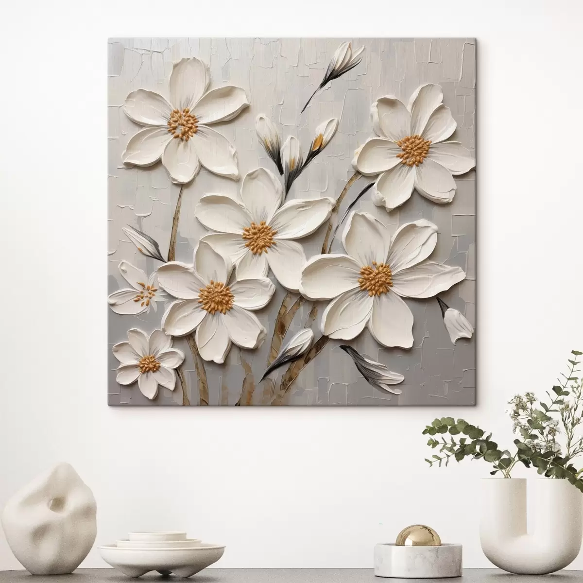Tablouri Flori albe voluminoase în stil pictură cu tușe mari s43366