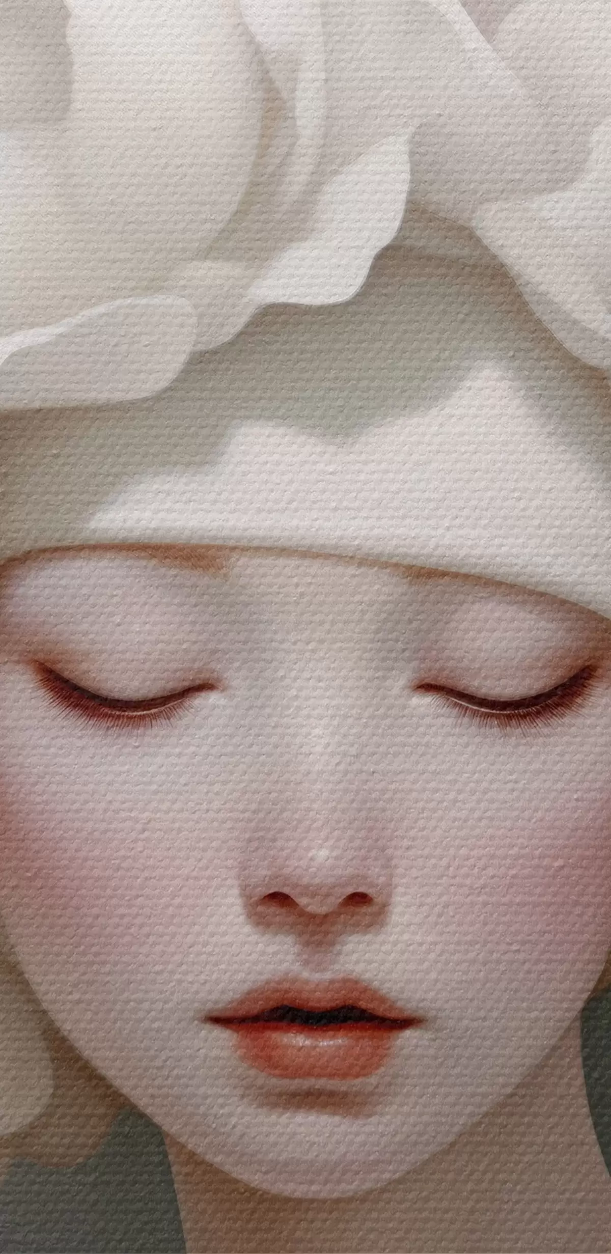 Tablouri Fată cu flori pe cap în tonuri moi s43385