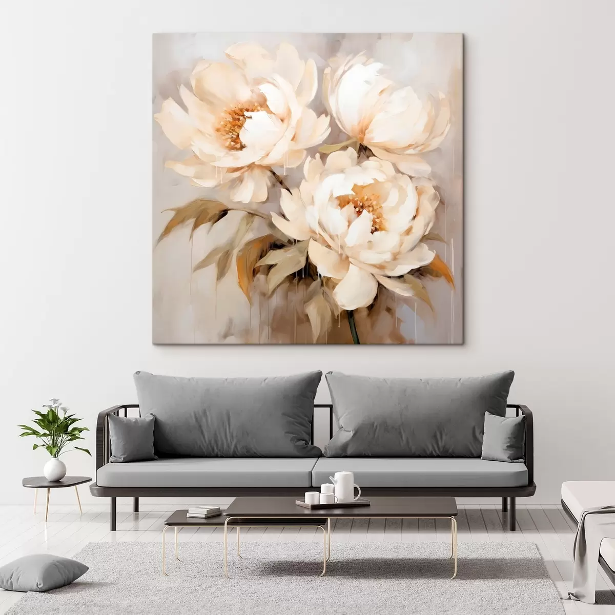 Tablouri Bujori delicate în tonuri neutre în stilul picturii abstracte s43387