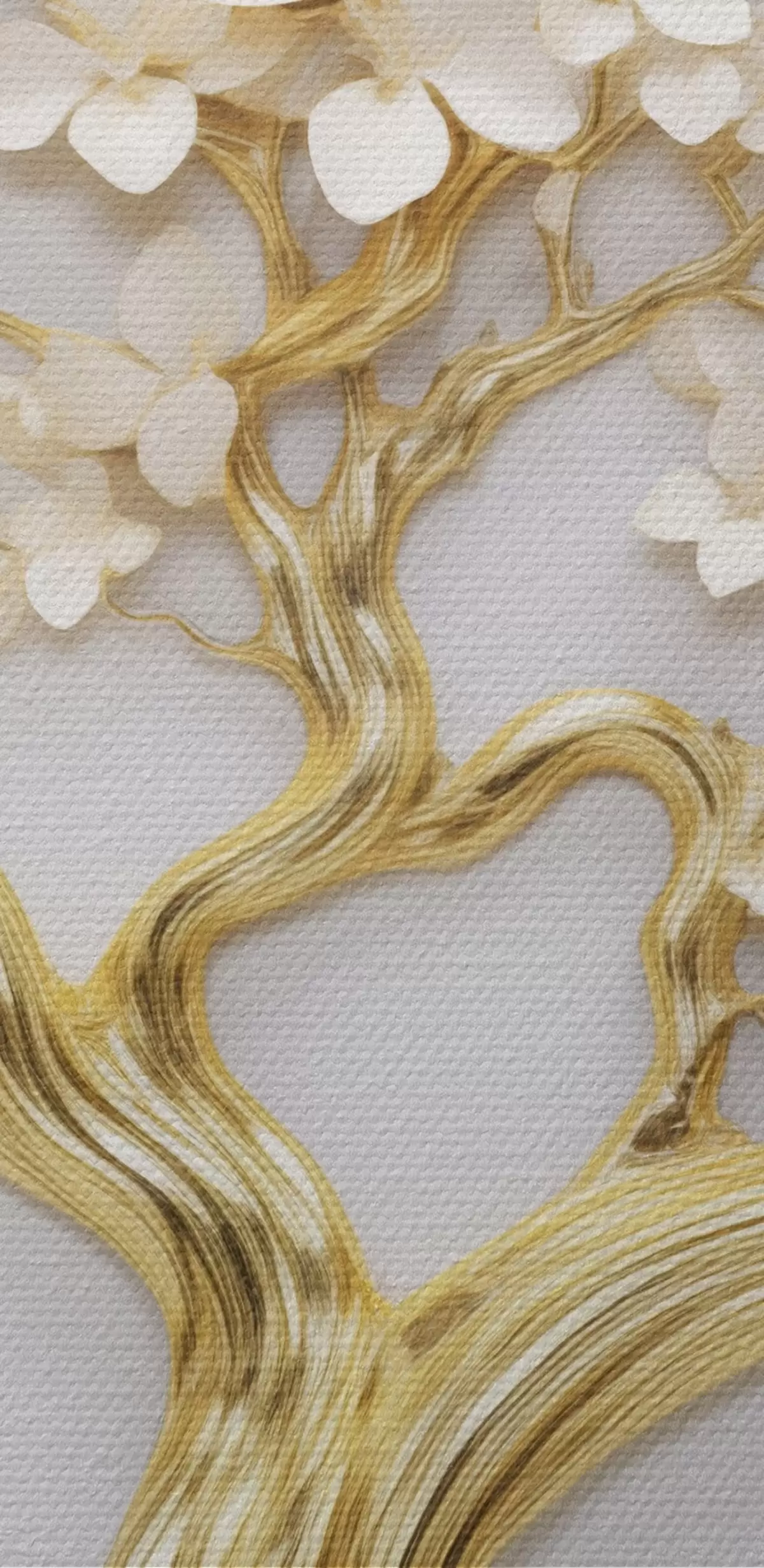 Tablouri Copac decorativ cu flori albe, fundal alb, pietre albe, detalii complicate, artă inspirată din natură s43388