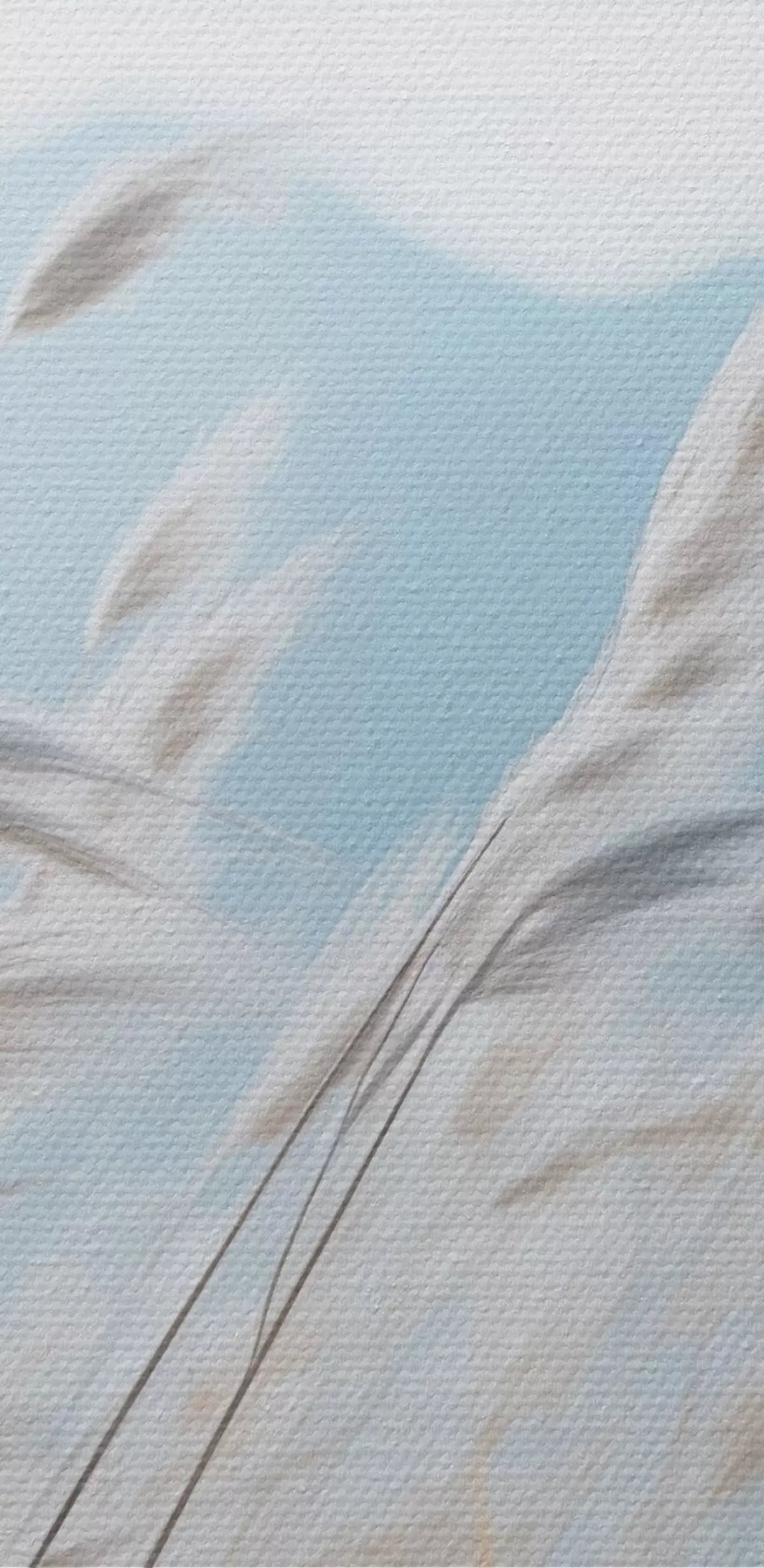 Pictură pe pânză Iarbă, câmp de pampas cu un munte albastru în fundal, cer albastru deschis, minimalist, culori pastelate Nr s43404