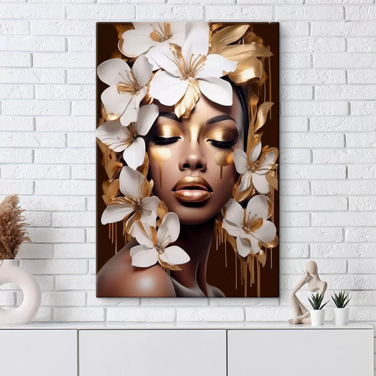 Pictură pe pânză Portret de femeie cu elemente florale Nr s43417