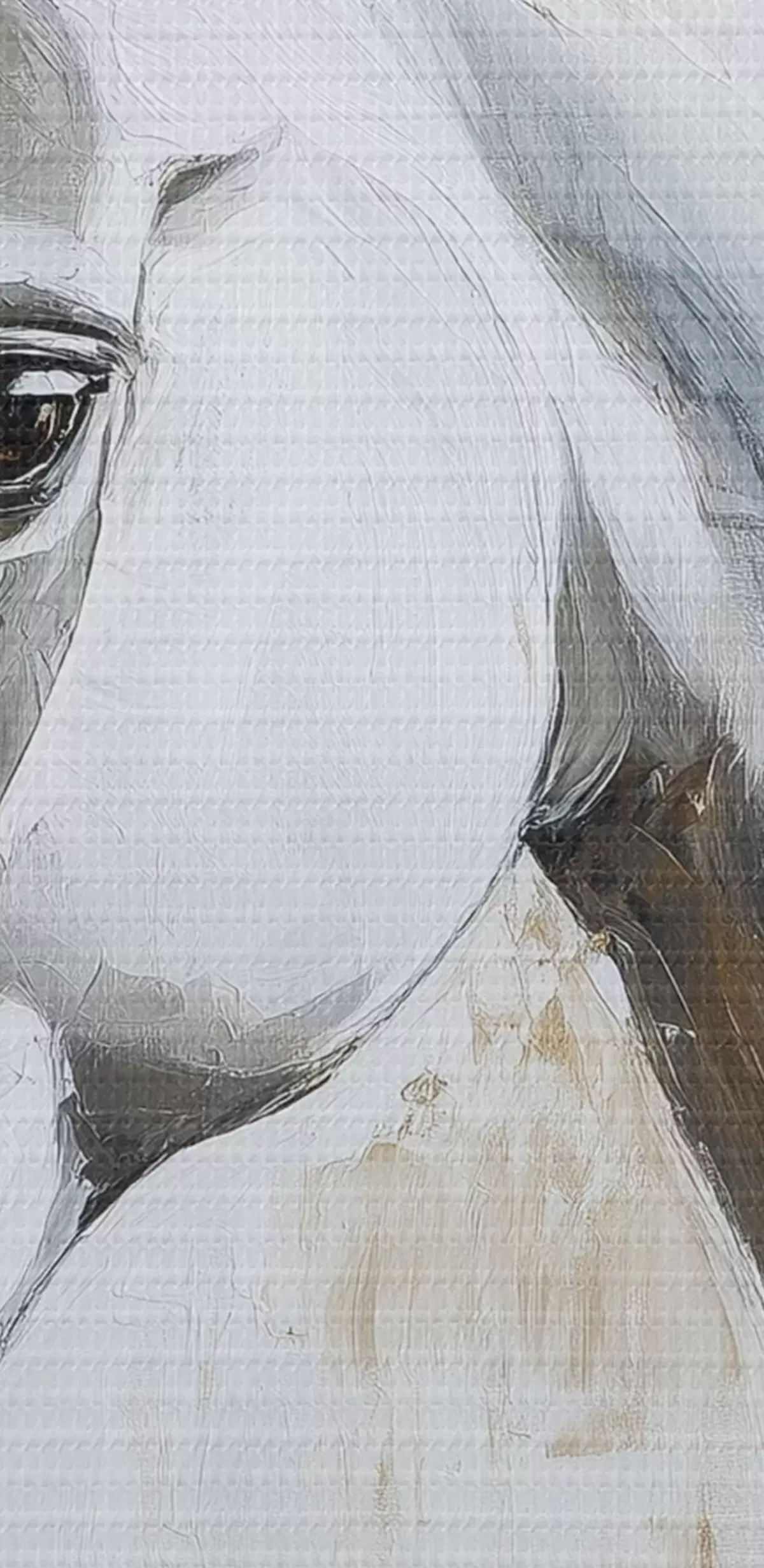 Pictură pe pânză Cal alb, desen în stil ulei, animale, lovituri de perie vii Nr s43497