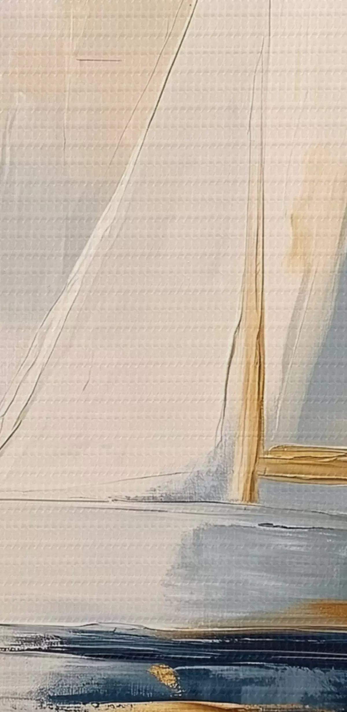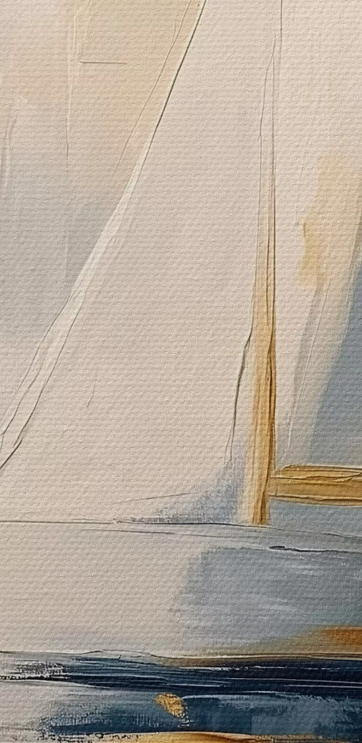 Pictură pe pânză Abstracție cu bărci cu pânze în mare, stil acrilic, apus de soare Nr s43500