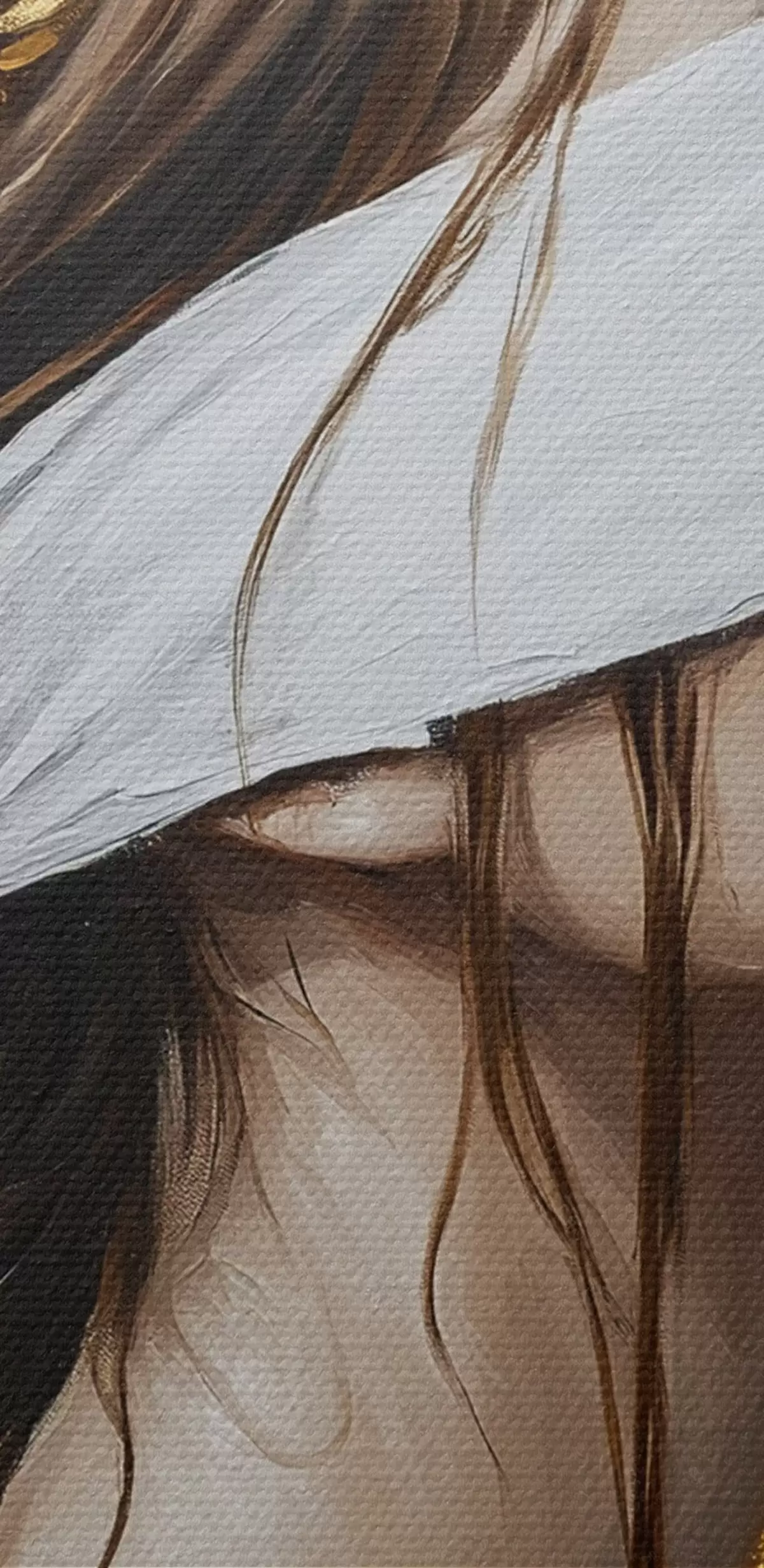Pictură pe pânză Femeie cu bandaj pe ochi, Grecia, desen în stil acrilic Nr s43502