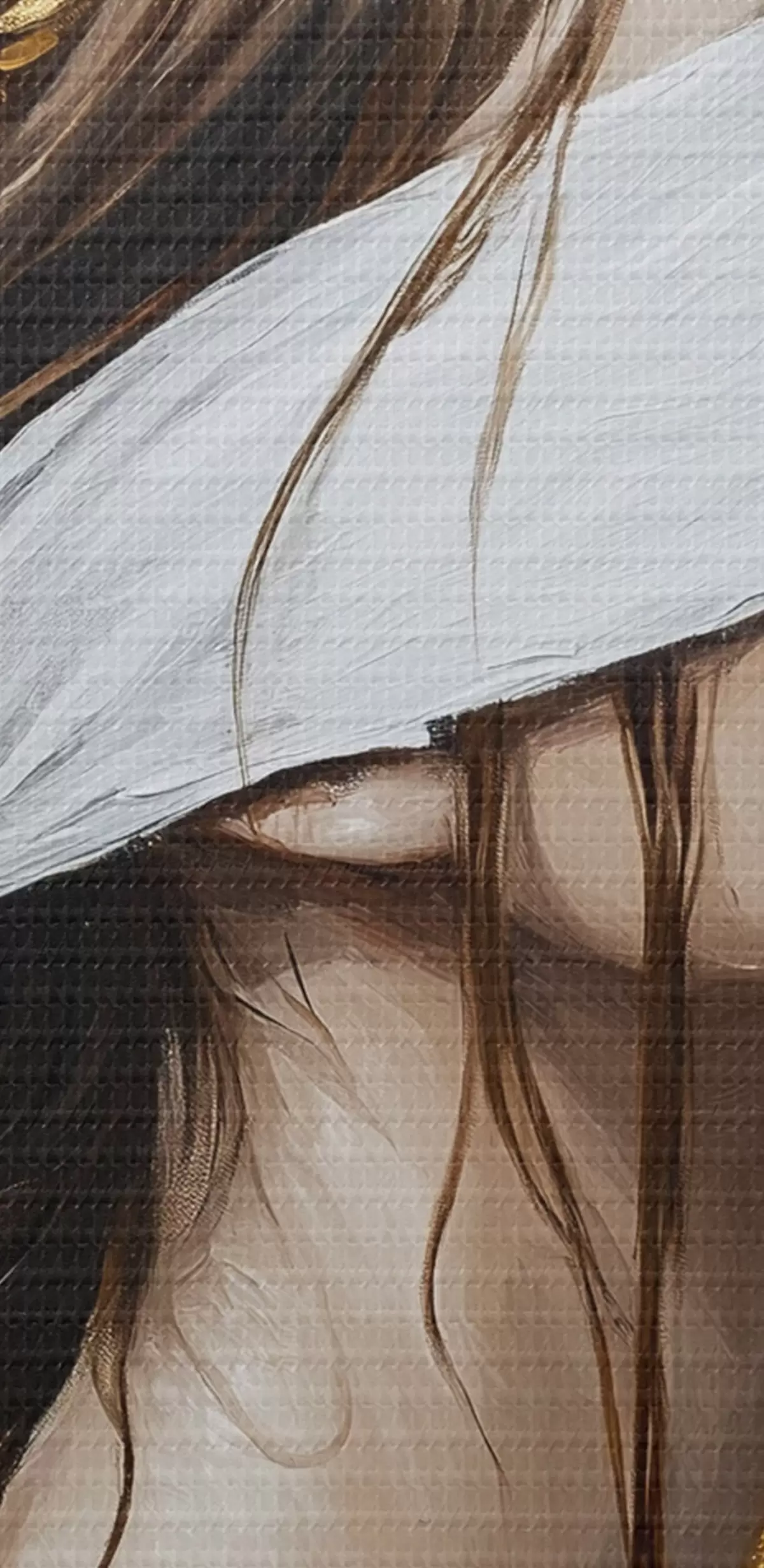 Țesătura fină a firelor de pe această pânză seamănă cu suprafața pânzelor artiștilor profesioniști.