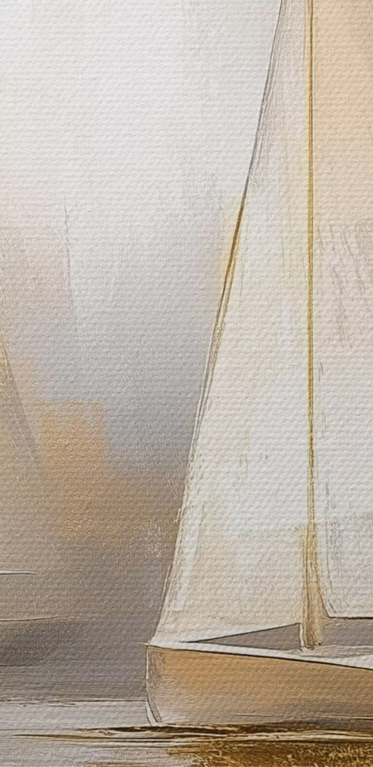 Pictură pe pânză Bărci pe mare, abstracție, stil ulei, culori bej Nr s43505