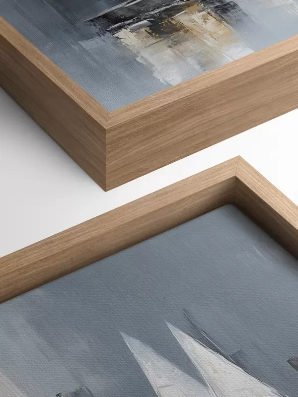 Pictură pe pânză Bărci cu vele cu reflexii în apă, desen în stil ulei, culori gri Nr s43506
