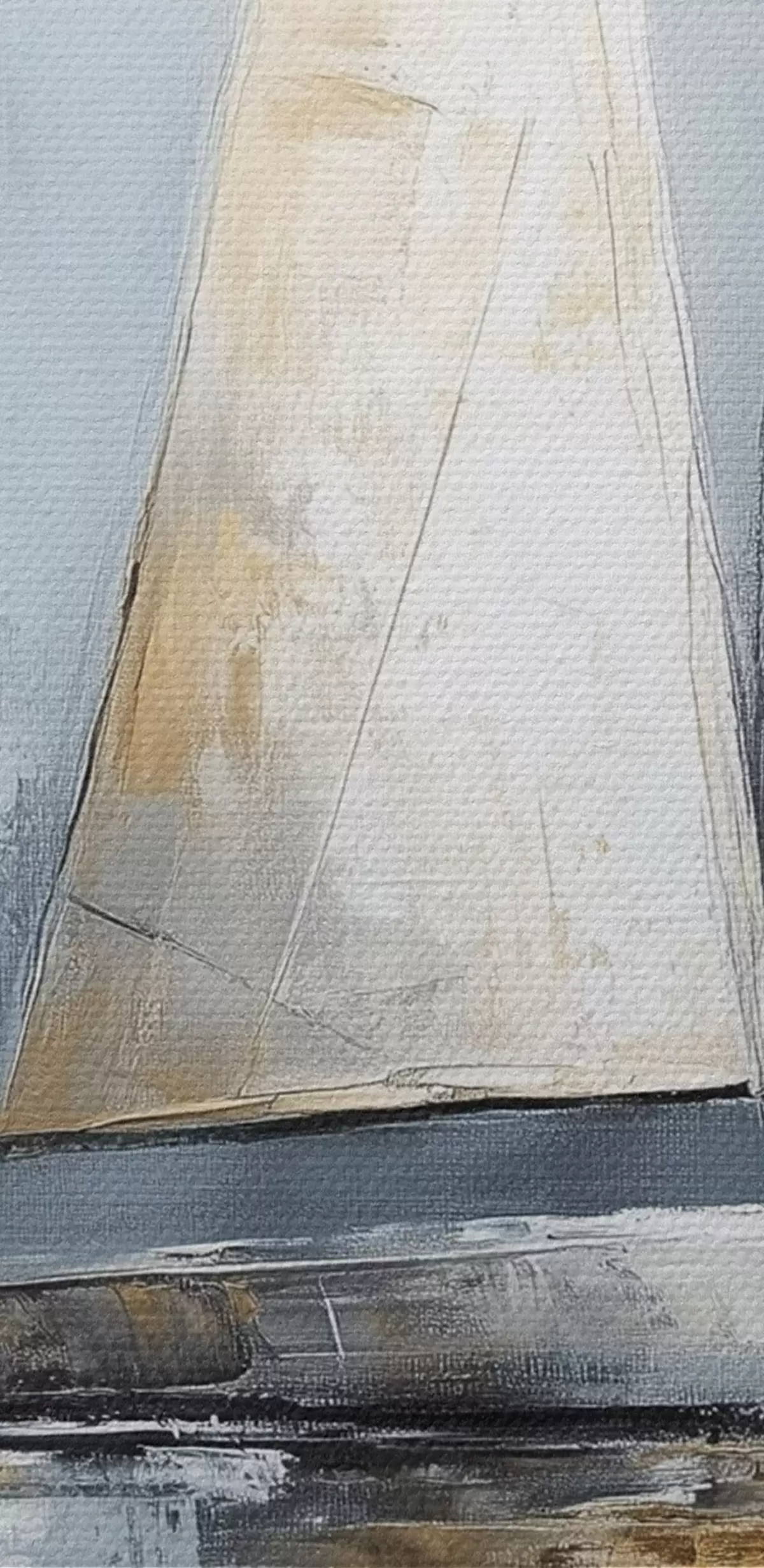 Pictură pe pânză Bărci cu vele cu reflexii în apă, desen în stil ulei, culori gri Nr s43506