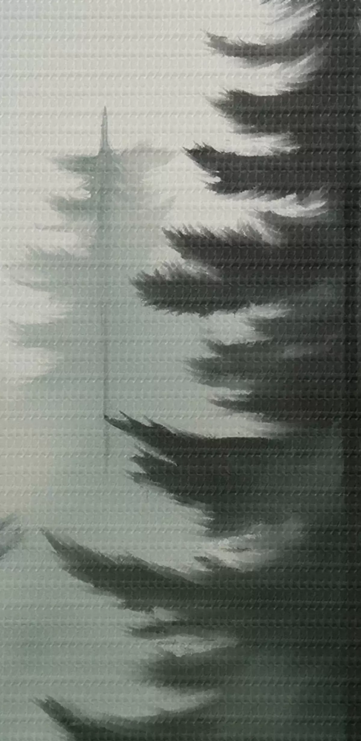 Țesătura fină a firelor de pe această pânză seamănă cu suprafața pânzelor artiștilor profesioniști.