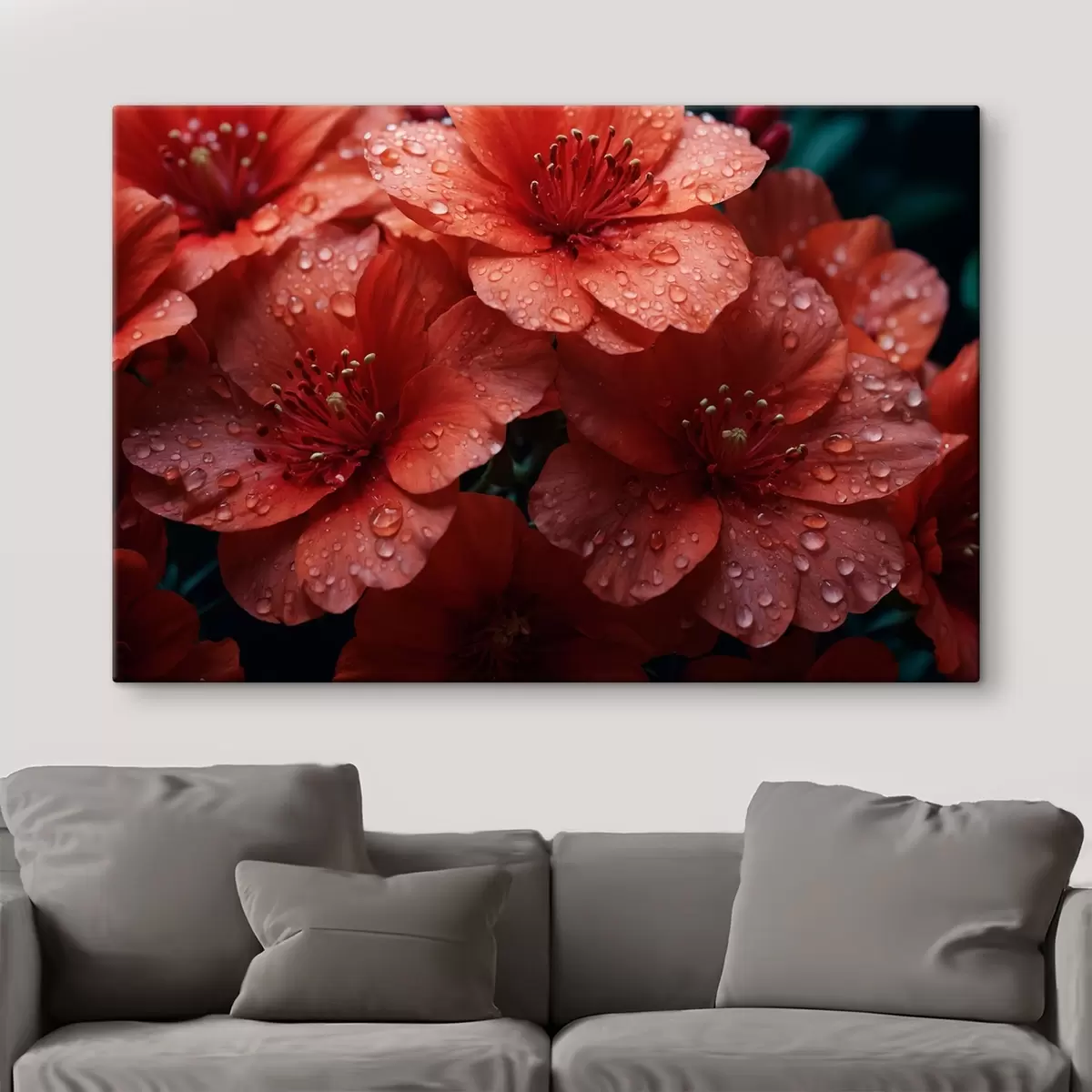 Pictură pe pânză Flori roșii cu picături de rouă Nr s43878