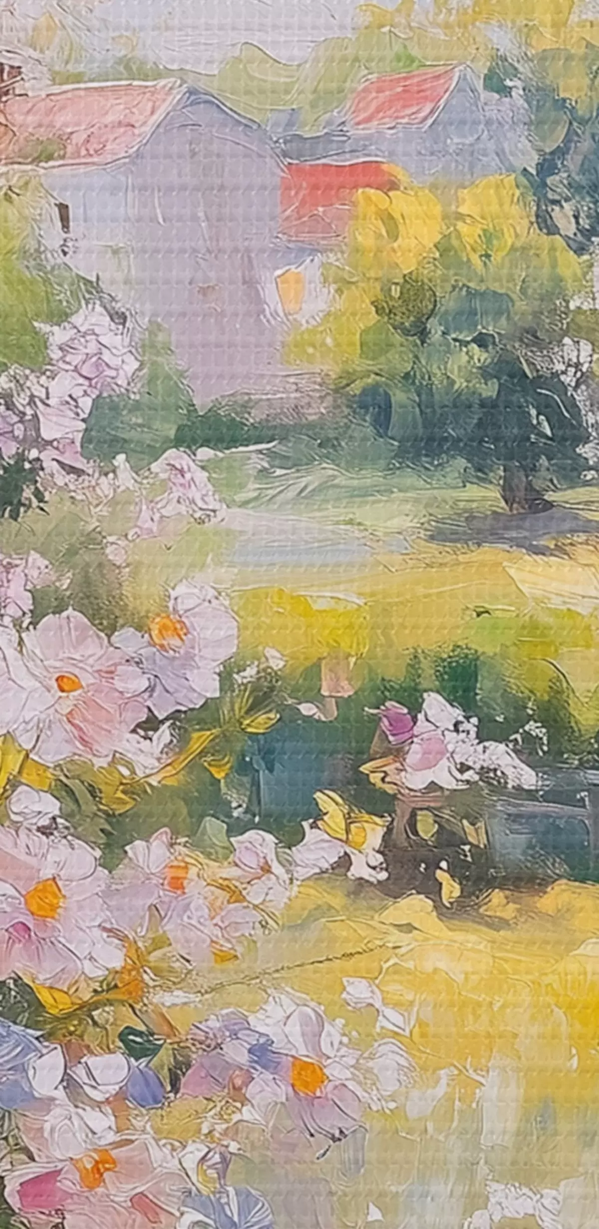 Tablouri Vara în sat, rustic, desen în stil ulei, flori în vază s43889