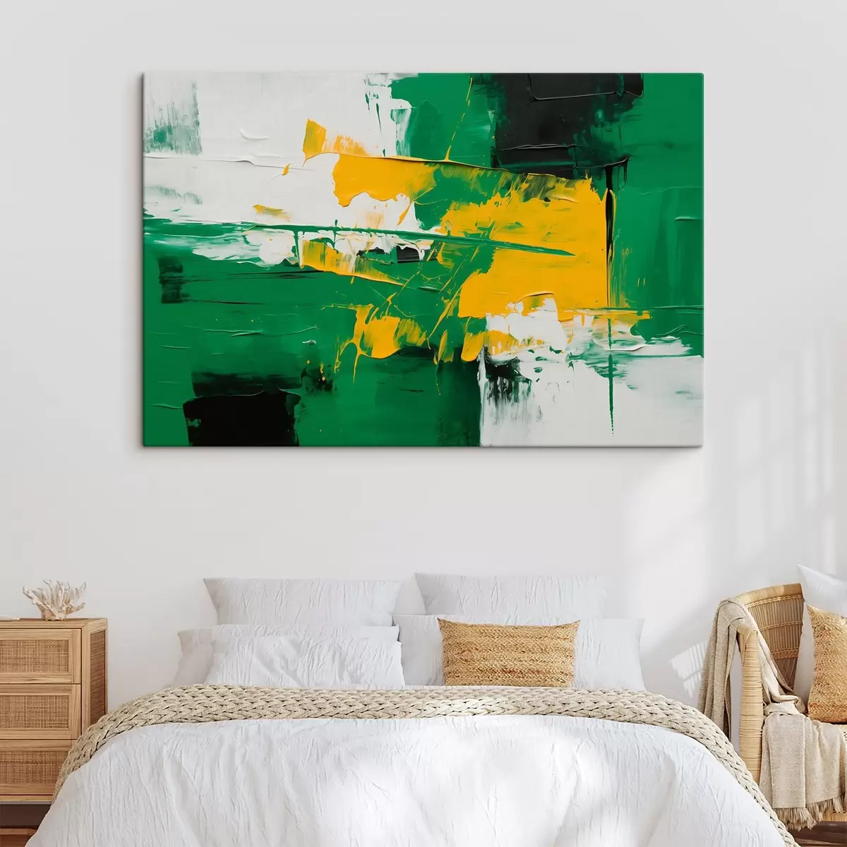 Pictură pe pânză Pictură abstractă în ulei în culori alb, verde și galben în stilul picturii în ulei Nr s43944