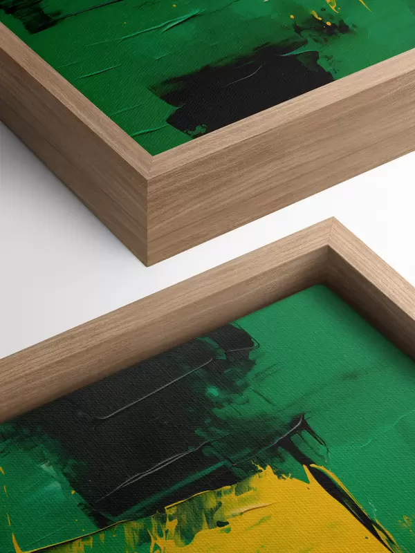 Tablouri Pictură abstractă în ulei în culori alb, verde și galben în stilul picturii în ulei s43944