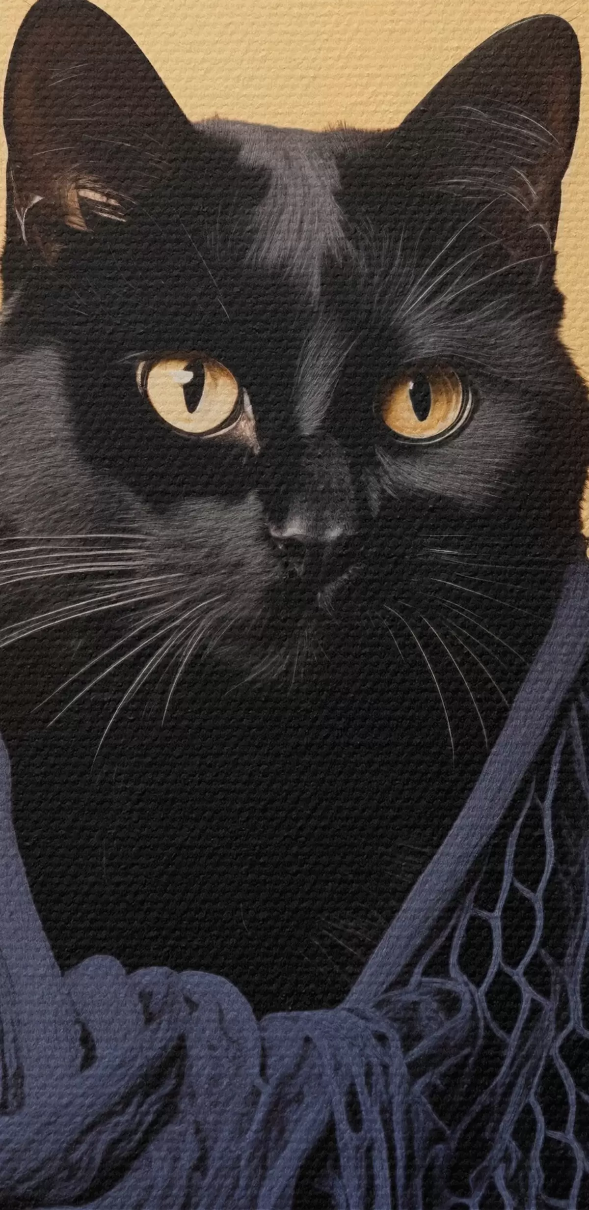 Pictură pe pânză Pisică neagră în plasă Nr s43959