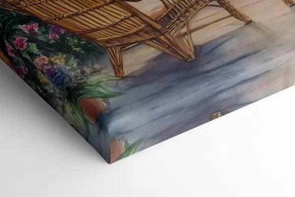 Pictură pe pânză Scaune de răchită pe apus de soare, peisaj montan, stil boho Nr s44020