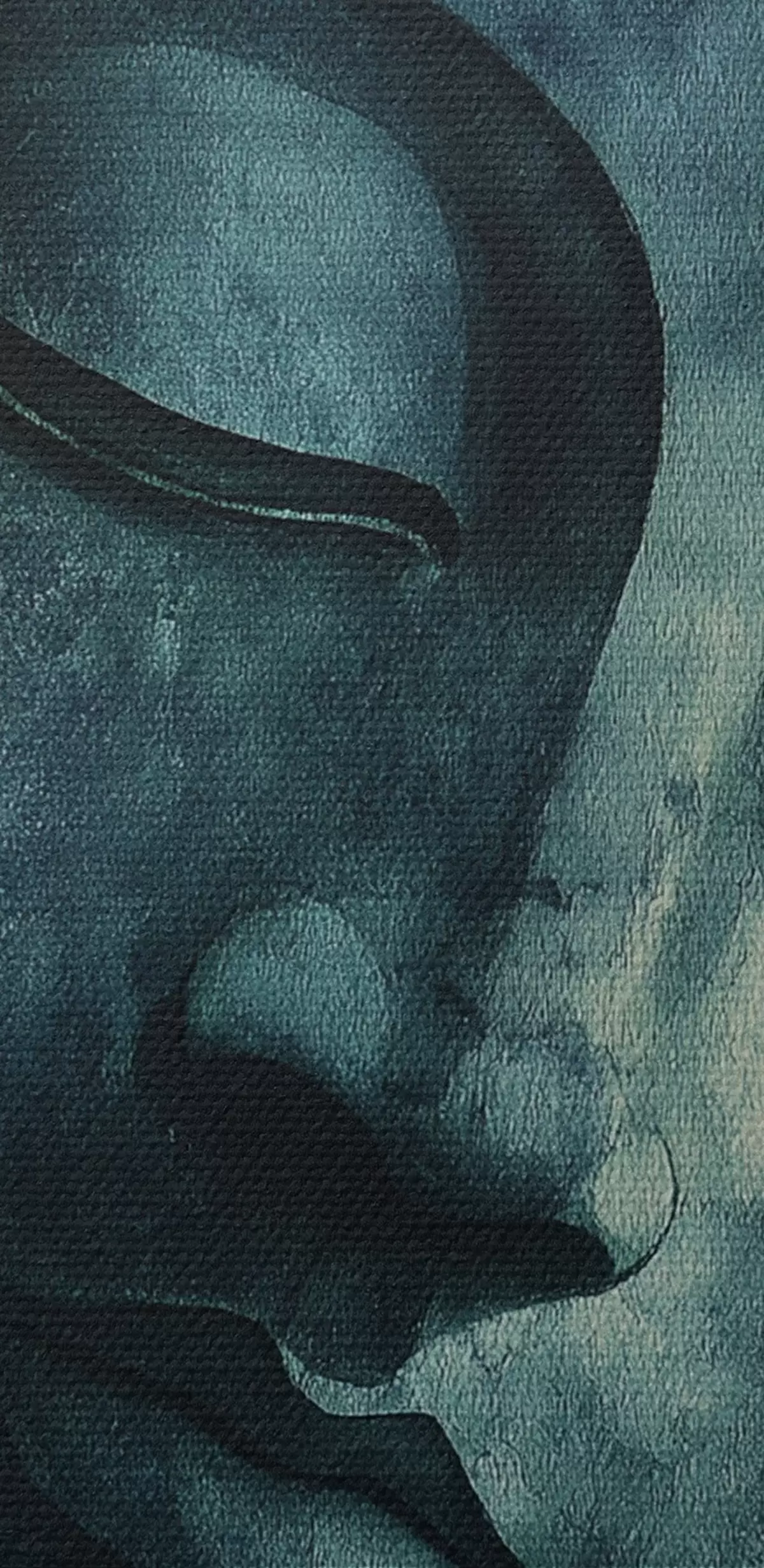Pictură pe pânză Buddha cu ochii închiși, meditație, culori verzi Nr s44030