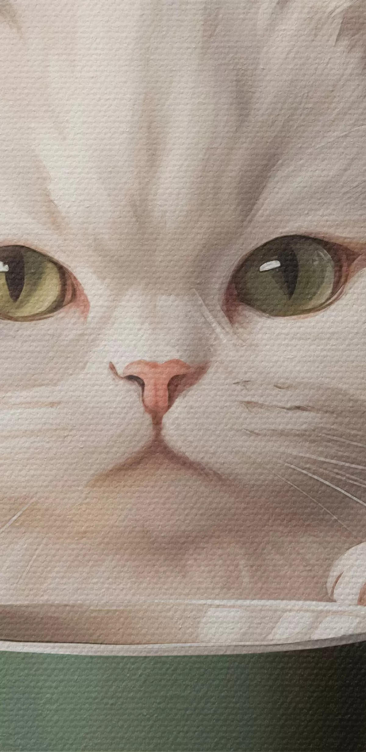Pictură pe pânză Pisică albă cu ceașcă verde Nr s44032